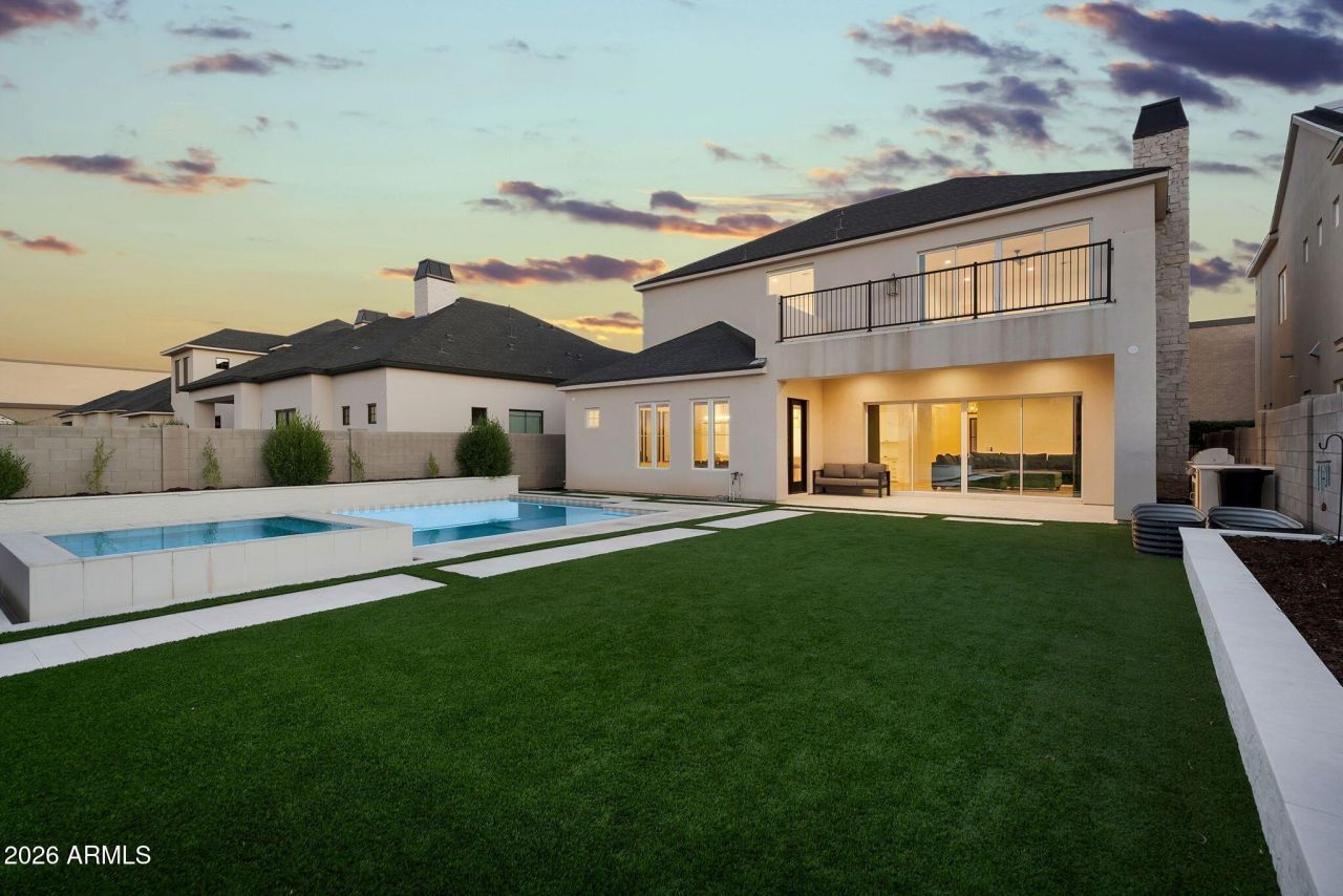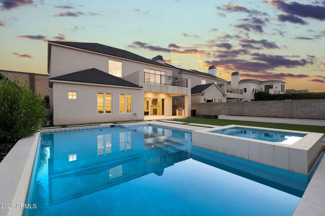 Tucked inside the coveted, gated Pecan Lake community in Queen Creek, this home delivers the perfect blend of privacy, luxury, and lifestyle quietly set behind the gates, yet just steps from some of the Valleys best entertainment, dining, live music, and games.Spanning nearly 4,000 square feet, the residence offers four bedrooms and four bathrooms, with a layout designed for both comfort and elevated living. Natural light, soaring spaces, and refined finishes create an atmosphere that feels both modern and timeless.At the heart of the home is a chef-inspired kitchen built to impress. A stunning quartz island anchors the space, complemented by custom cabinetry, built-in refrigeration, and a Fisher & Paykel 8-burner cooktop paired with a dual oven, perfect for hosting, cooking, and gathering in style. A gas fireplace adds an unexpected touch of warmth and character, making the kitchen feel like the true soul of the home.Engineered hardwood flooring flows throughout, adding sophistication to every room. The primary suite is a private retreat, featuring balcony access overlooking the backyard, an oversized walk-in closet, and a spa-like bath with dual shower heads, a deep soaking tub, and dual vanities designed for effortless luxury.Outside, the experience continues with nearly $200K in custom backyard upgrades, including a brand-new pool and spa, framed by sleek hardscape and low-maintenance turfyour own resort-style escape with easy upkeep.Refined, rare, and perfectly positioned in one of Queen Creeks most desirable communitiesthis is luxury living at its absolute best.