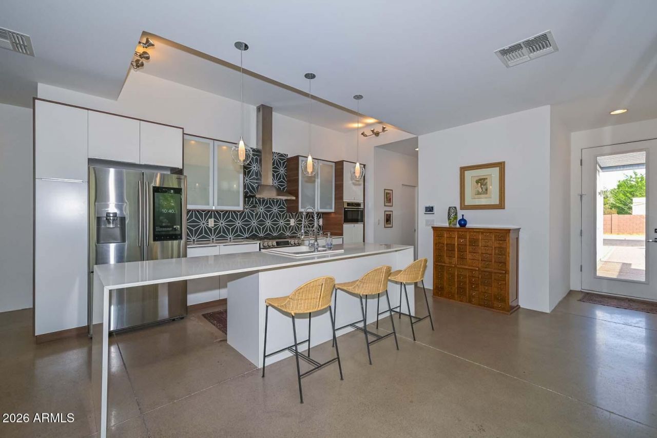 Welcome home to a place where thoughtful design meets modern comfort and effortless indoor-outdoor living. This beautifully appointed home features 9ft ceilings, abundant natural light, plantation shutters, and elegant recessed and pendant lighting throughout. The gourmet kitchen is a true centerpiece, complete with a 5-burner gas stove, pot filler, farmhouse sink, smart refrigerator, walk-in pantry, and an expansive island with a recesssed charging tower and seating for 7-8--perfect for entertaining and every day living. Adjacent dining and living spaces open seamlessly through double sliding glass doors to a stunning patio, creating the ultimate indoor-outdoor experience. The luxurious primary suite offers a private courtyard, walk-in closet, and spa-inspired bath with multi-head shower, rainfall feature, ambient night lighting, and designer finishes. Additional bedrooms feature custom touches including barn doors, pocket doors, and lighted walk-in closets.Step outside to enjoy professionally designed landscaping with outdoor lighting, a pergola, rain chains, and multiple outdoor living areas. Additional highlights include smart home features, security system, EV outlet, Tuff shed with built-ins, and more. Ideally located near freeways, shopping, dining, healthcare, and schools--this home truly has it all.