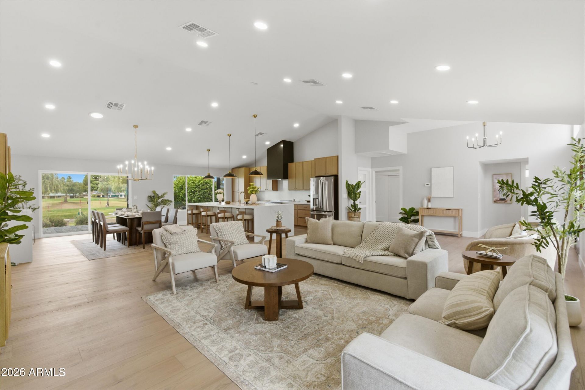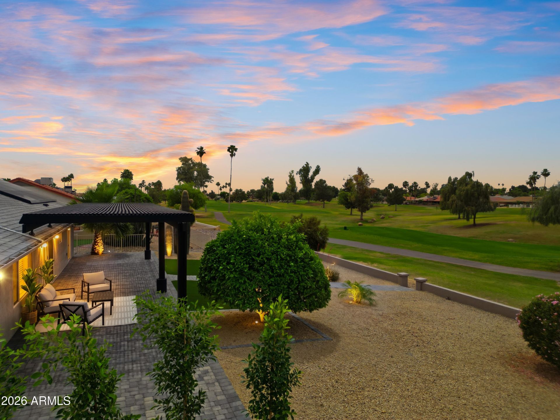 EXQUISITE Golf Course Living with breathtaking views and a fully updated interior. This beautifully redesigned home features a bright, open layout, recessed lighting, and wide-plank luxury vinyl flooring throughout.The gourmet kitchen offers quartz countertops, natural oak cabinetry, stainless steel appliances, and a large island--perfect for entertaining.Enjoy two spacious primary suites, each with spa-inspired bathrooms, oversized rain showers, and custom closets.Relax on the expansive covered patio overlooking the golf course and enjoy stunning Arizona sunsets.Includes a paid solar lease, offering energy efficiency and long-term savings.Resort-style living at its finest.