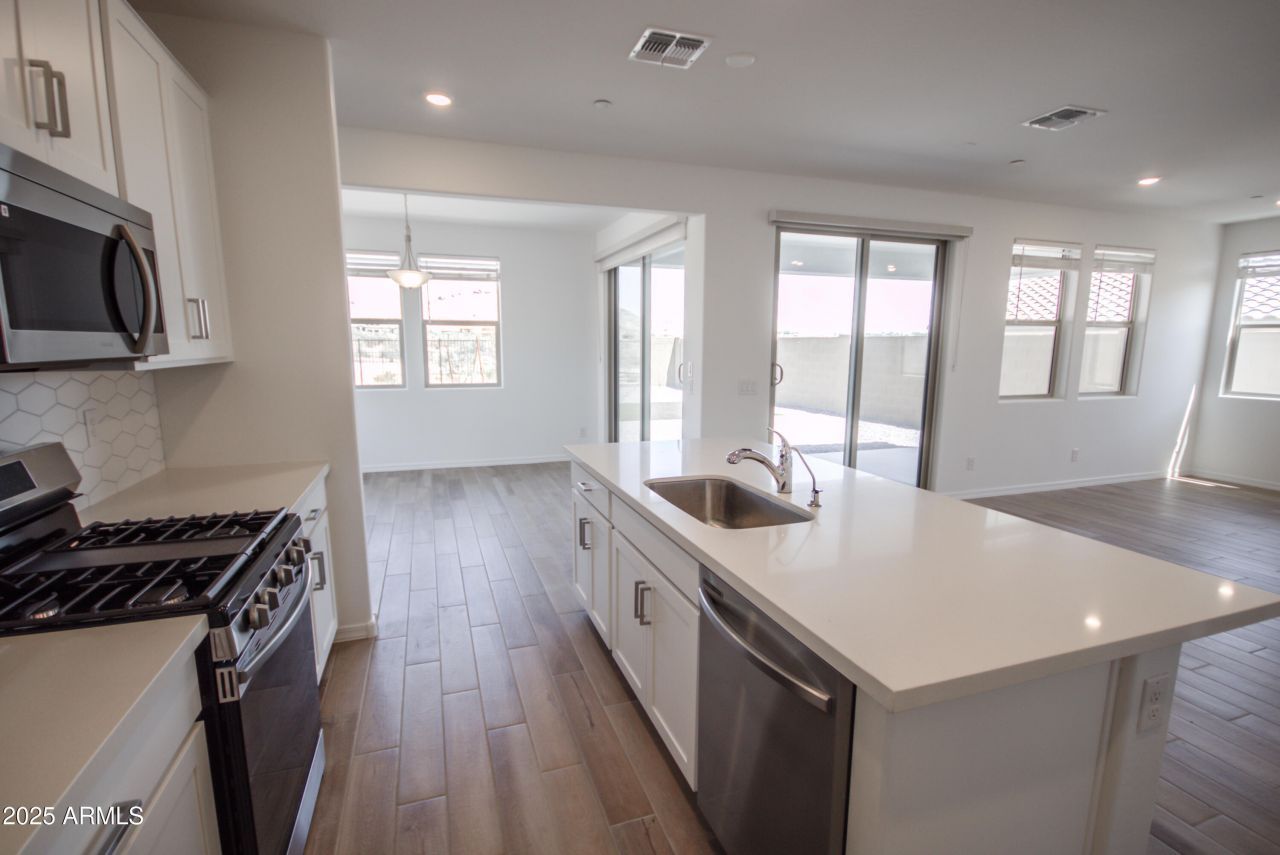 This well-maintained, almost new, single-family home in the desirable community of Buckeye, AZ, presents a strong turnkey investment opportunity. Currently occupied by a reliable tenant, this property delivers immediate and guaranteed rental income, providing strong cash flow from day one with minimal vacancy risk. This 2-story home offers a spacious loft, four bedrooms, and four bathrooms, providing ample space for comfort and convenience. One bedroom and bathroom are conveniently located downstairs.The open-concept design allows the kitchen island to flow seamlessly into the living room, creating an inviting space for entertaining. The kitchen is equipped with stainless steel appliances, enhancing the modern aesthetic of the home.