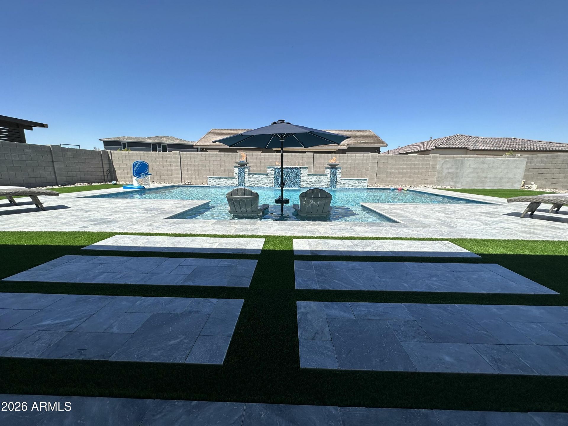 Experience luxury living in the gated Spur Cross Vaquero community. Built in 2021 and barely lived in as a private vacation home, this 4 bed, 3.5 bath residence shows like NEW. Priced at $899,900--well below comparable homes. This is a rare opportunity. The backyard is a true showpiece with a resort-style pool, waterfalls, fire features, limestone decking, and lush turf. Inside features soaring ceilings, oak-look tile, and a 4-panel slider creating seamless indoor-outdoor living. The chefs kitchen offers quartz counters, double-stacked cabinetry, premium appliances, and a large island. Spacious primary suite, versatile den, 3-car garage, and RV gate complete the home.