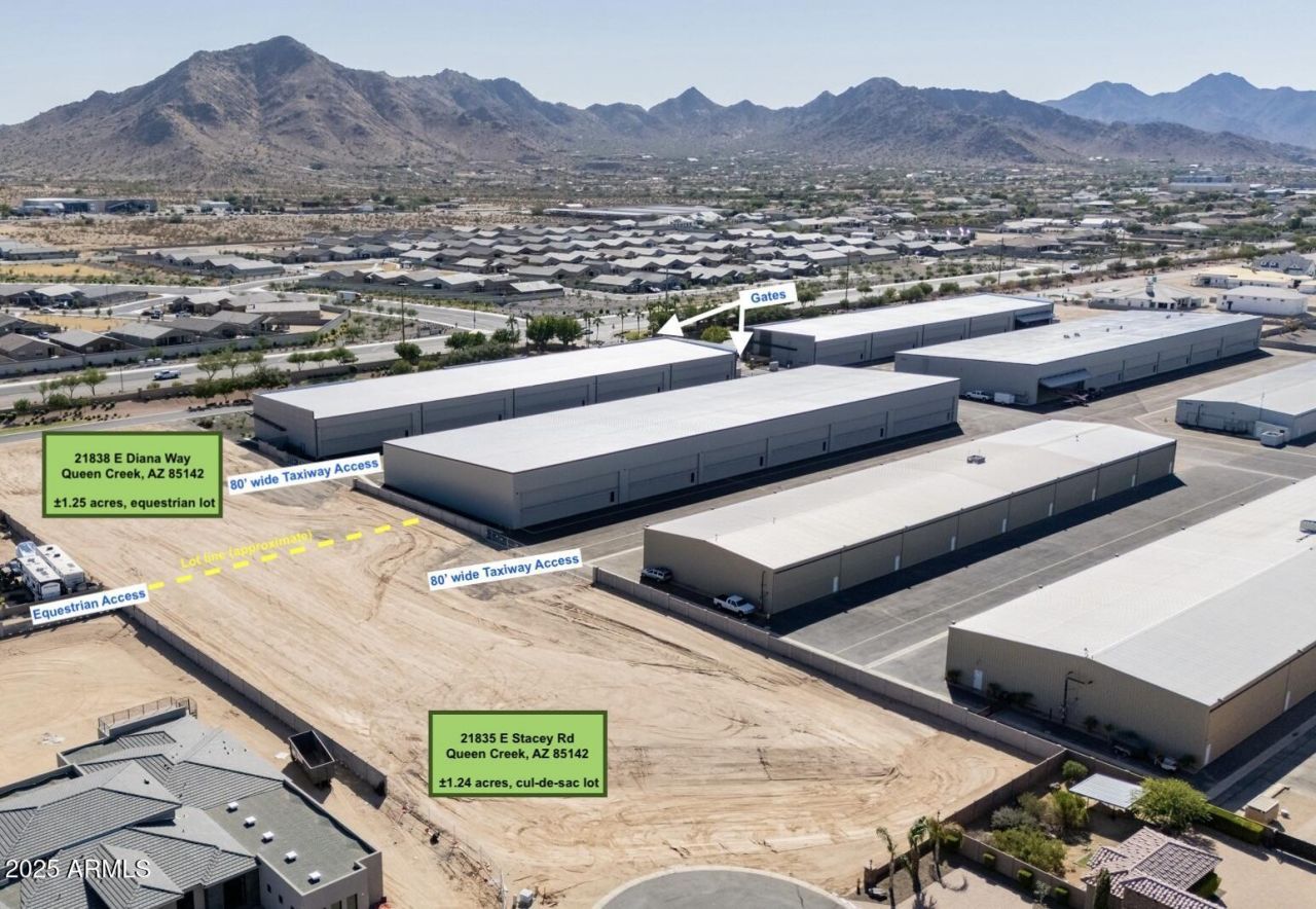 THIS IS IT - ONLY ONE FLIGHT LOT REMAINING FOR SALE AT PEGASUS! Truly unique 1.25AC aviation/horse lot in exclusive gated custom home community! This lot has amazing mountain views & is 3 houses away from the current $16M new construction home listing. This lot allows you to build a hangar w/ 80 wide taxiway access - private jets & helicopters are allowed, great aviation & home community. This lot also has extra dirt for home for construction w/ est. $10k value. And its within minutes to great restaurants, entertainment and recreational outdoor areas! Queen Creek has been ranked the 2nd wealthiest city in AZ & best place to raise families. Ask for local home builder options that know Pegasus & Queen Creek.