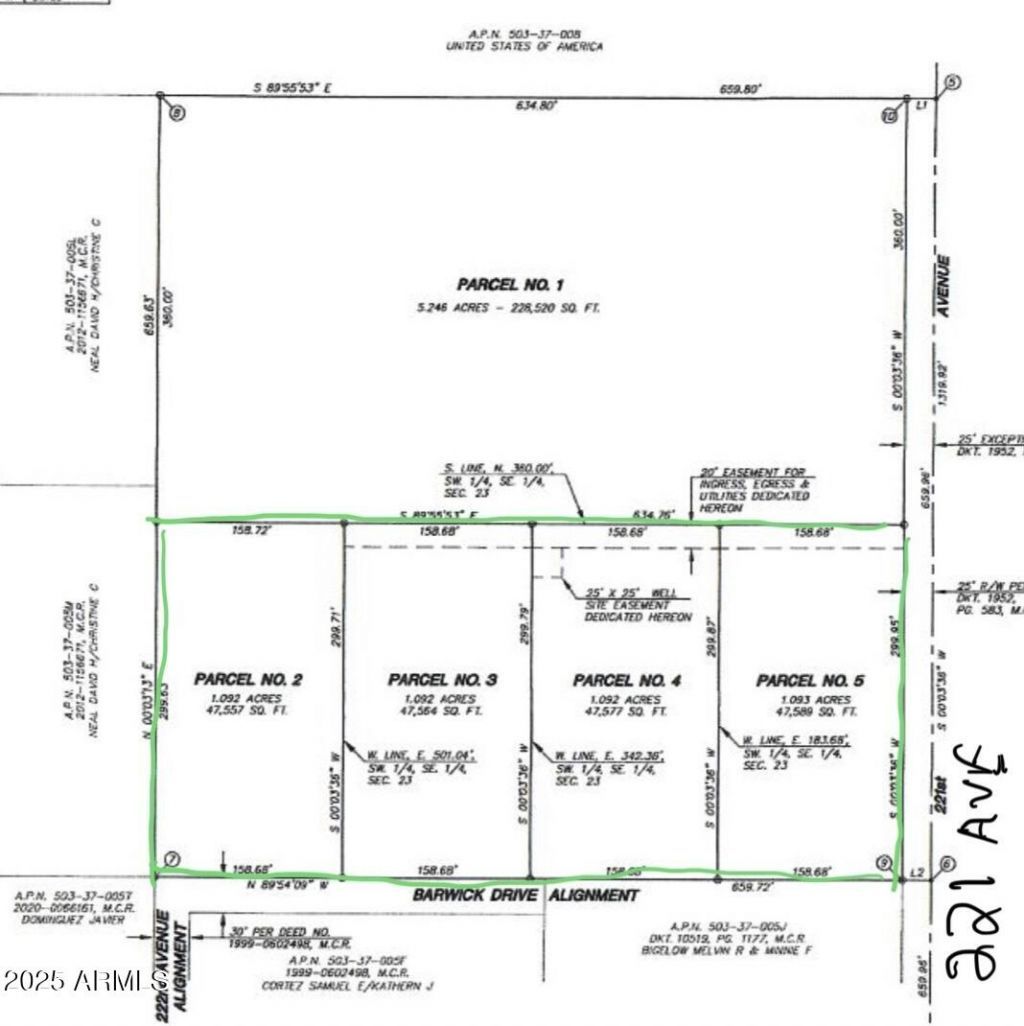 A beautiful 4.4 acre pancake flat land parcel with easy access to Hwy 60 and all the roping arenas. Thisis great site for your horse property, or 4 building sites with a new well. This parcel (APN 503-37-005Y,005Z, 083,084) is 1000 ft as the crow flies from the Surprise Estates Subdivision. Land to the north isUSA owned with unobstructed views. Easy access to paved Crozier Rd. Not many land parcels close toHwy 60 remaining and a great value / investment opportunity. Dont miss out on this pristine acreagewith endless possibilities. Parcel is within walking distance to the new High School. Owner may finance.