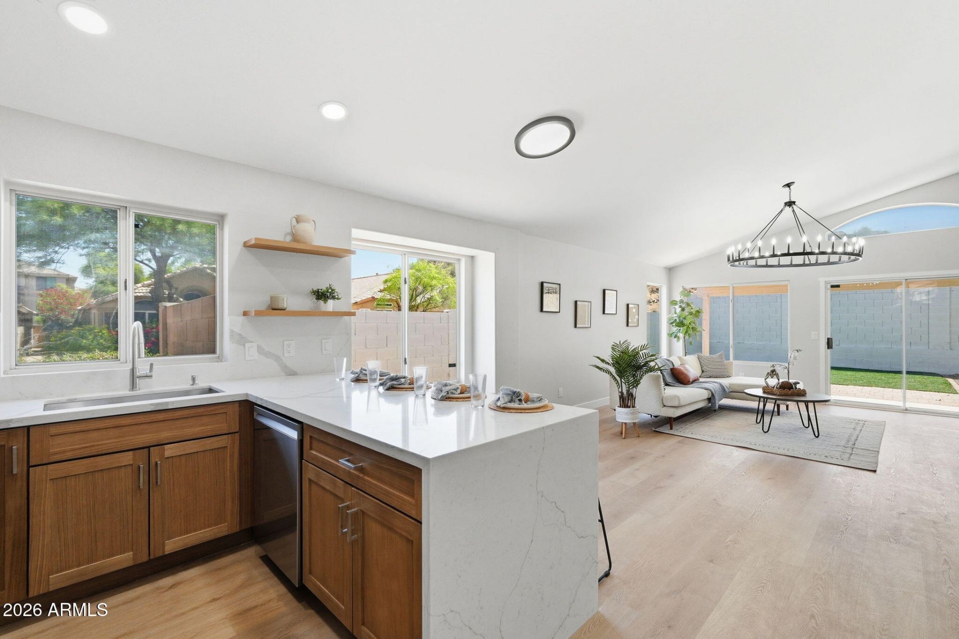 Welcome to this beautifully remodeled home in the highly sought-after Northwest Valley of Phoenix! Perfectly situated on a desirable corner lot, this property offers stunning mountain views and convenient freeway access--making it easy to enjoy everything the Valley has to offer.Step inside to discover a thoughtfully updated interior featuring vaulted ceilings and an open, airy feel. The home has been completely renovated with brand-new flooring, modern cabinetry, elegant quartz countertops, and a full suite of new appliances. Along with a new roof and new A/C unit. The spacious primary suite boasts a custom tile shower, creating a spa-like retreat, while the family room showcases a unique designer accent wall that adds character and style. With three bedrooms and two bathrooms, this home offers both comfort and functionality. Major upgrades--including a new roof and new air conditioning system--provide peace of mind for years to come.Outside, the low-maintenance backyard is perfect for entertaining and everyday living, featuring artificial turf and a paver patio ideal for barbecues, gatherings, or a safe space for kids and pets to play.Dont miss your chance to own a move-in-ready home in one of Phoenixs most desirable areas!
