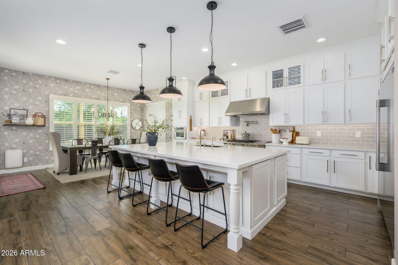 The crown jewel of La Sentiero! Over $200K+ in upgrades PLUS a solar system-PAID OFF at closing for instant value! Your 4 bedroom 3.5 bathroom has complete privacy with no backyard neighbors. The gourmet kitchen has double-stacked white cabinets, a massive 10x6 granite island, 48 6-burner gas stove/double oven, 62 fridge, and pot filler. A 16 retractable multi-slide door seamlessly connects the indoors to a breathtaking yard featuring an luxury heated pool and spa, gas fire pit, custom pergola, artificial turf, and mature trees. Highlights include an arched metal front door, plantation shutters, extended master shower, and a builder-added entry half-bath. The split 3-car garage boasts epoxy floors, custom cabinets, and a 240V EV charger. 20 side yard with RV gate. A true masterpiece