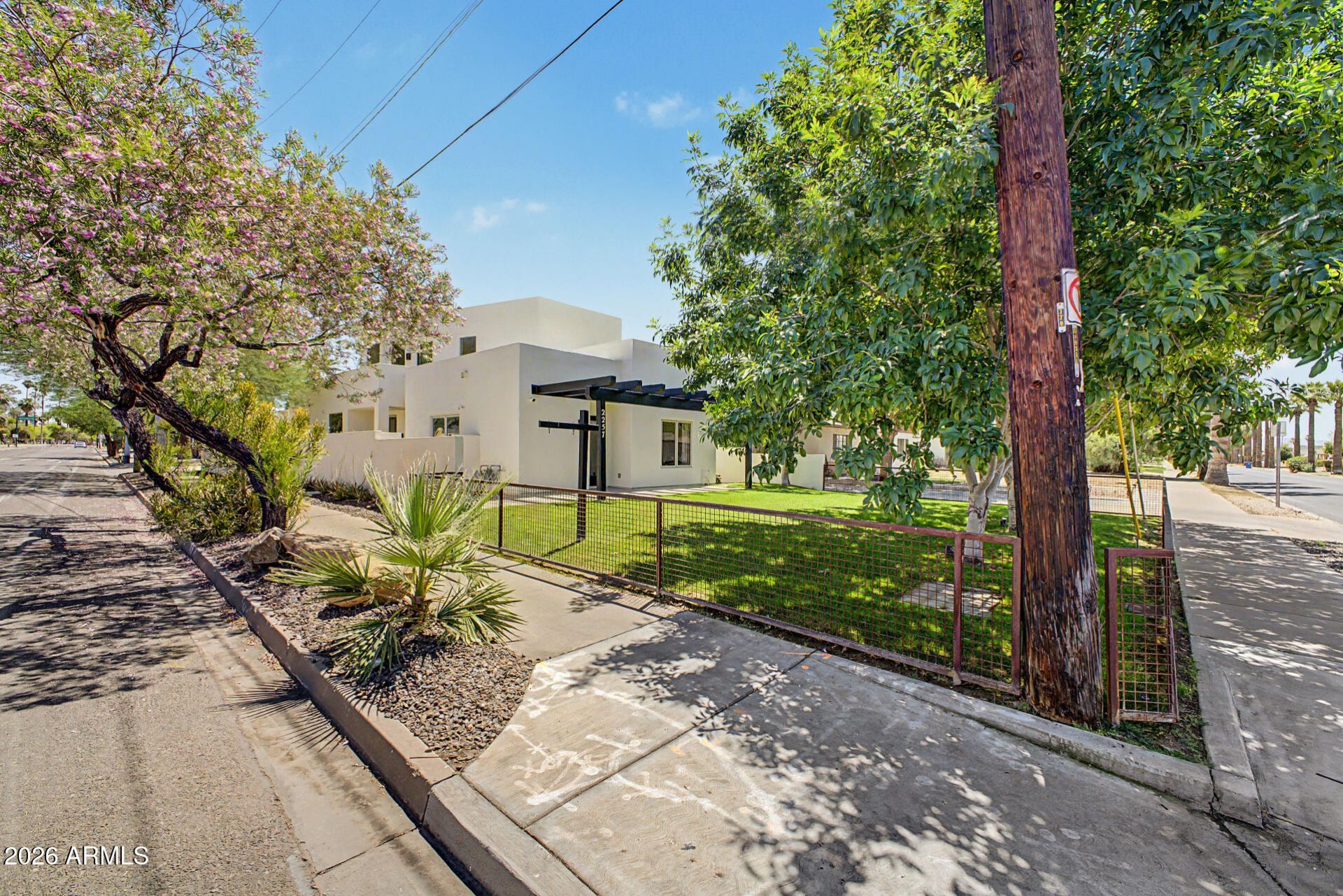 Encanto living done right. One of the most desirable historic neighborhoods in Phoenix. Walk to Encanto Golf Course, tons of families, and an easy quick 9.Rare fully detached 2 car garage on a corner lot. Huge open layout with engineered wood floors, brand new roof, natural light, fresh paint, and a clean modern fireplace. Kitchen finished with quartz, stainless, tile backsplash, prep island, plus a wet bar.Upstairs loft with balcony and full downtown skyline views. Main suite is dialed with fireplace, soaking tub, walk in closet, and balcony.Plus a second primary with its own bath and private outdoor access. Serene backyard has a covered patio, fire pit & a lovely pergola ideal for unwinding or entertaining. This turn-key abode is waiting for you!