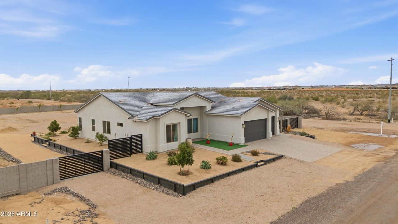 Location! Location! Amazing property located near 163rd Ave and Happy Valley Rd. Close to the 303, Surprise corridor and TSMC. This acre + property includes 3 custom RV gates. Perfect for your toys or equipment that needs easy access in and out. With over an acre you have plenty of room for an RV garage, casita, or guest home. Property has a double septic system and upgraded 400amp panel for future additions. This contempoary luxury home has a gourmet kitchen white shaker cabinetry, tile backsplash, high-grade quartz. The owners suite is increadible with a barn door, separate vanities, soaking tub, snail shower and wait unitl yous see the closet..it was originally designed as a separate bedroom. Electrical and irrigation surround the property. Located in a upscale neighborhood. San Ysidro road is scheduled to be paved to 158th Ave during future development.