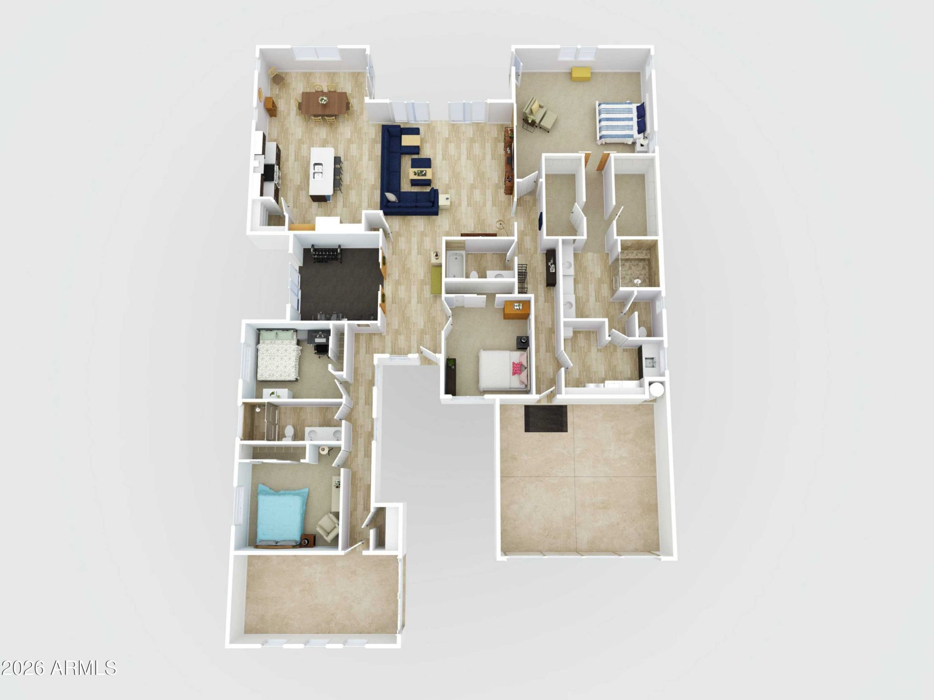 Nestled in the sought-after Tierra del Rio community of North Peoria, this thoughtfully designed 2,812 sq ft single-story home offers 4 bedrooms, 3 baths, a flexible den, a 3-car garage (separate 2-car + 1-car), and a resort-style pool - ideal for buyers who want a move-in ready home designed for both everyday living and entertaining.The open-concept great room connects the family room, dining and kitchen, featuring quartz countertops, a large island, designer cabinetry, and stainless-steel appliances. The split floor plan keeps the primary suite private with dual vanities, a large walk-in shower, two walk-in closets, and direct access to the oversized laundry room for added convenience. Secondary bedrooms are on the opposite side, while the den offers flexibility as a home office, gym, or formal dining space.The backyard is finished with an extended paver patio, low-maintenance landscaping, built-in gas fire pit with bench seating, and a sparkling pool. Surrounded by single story homes for added privacy. Ideally located near parks, schools, shopping, dining, Loop 303, I-17, Lake Pleasant, and hiking.
