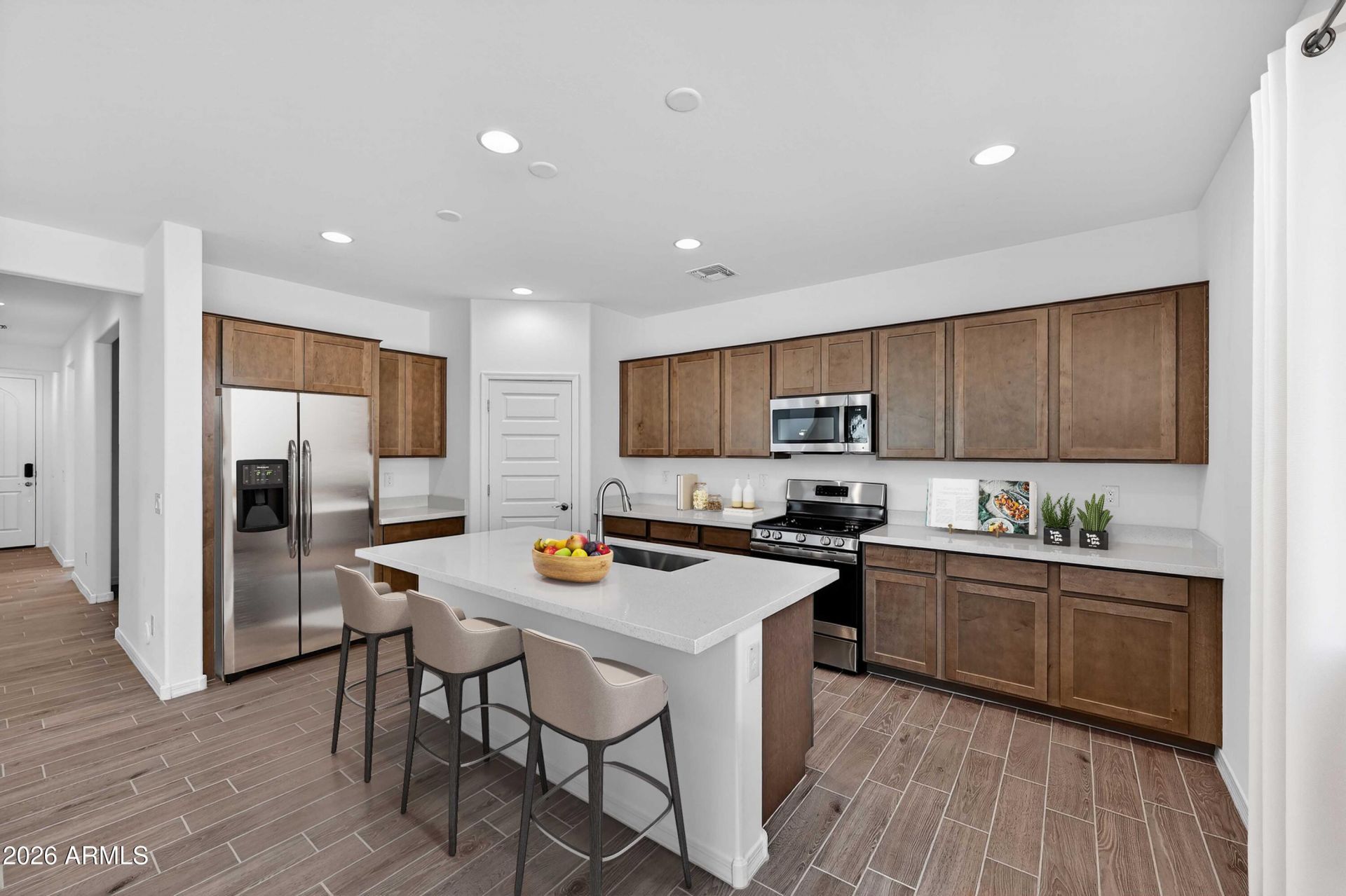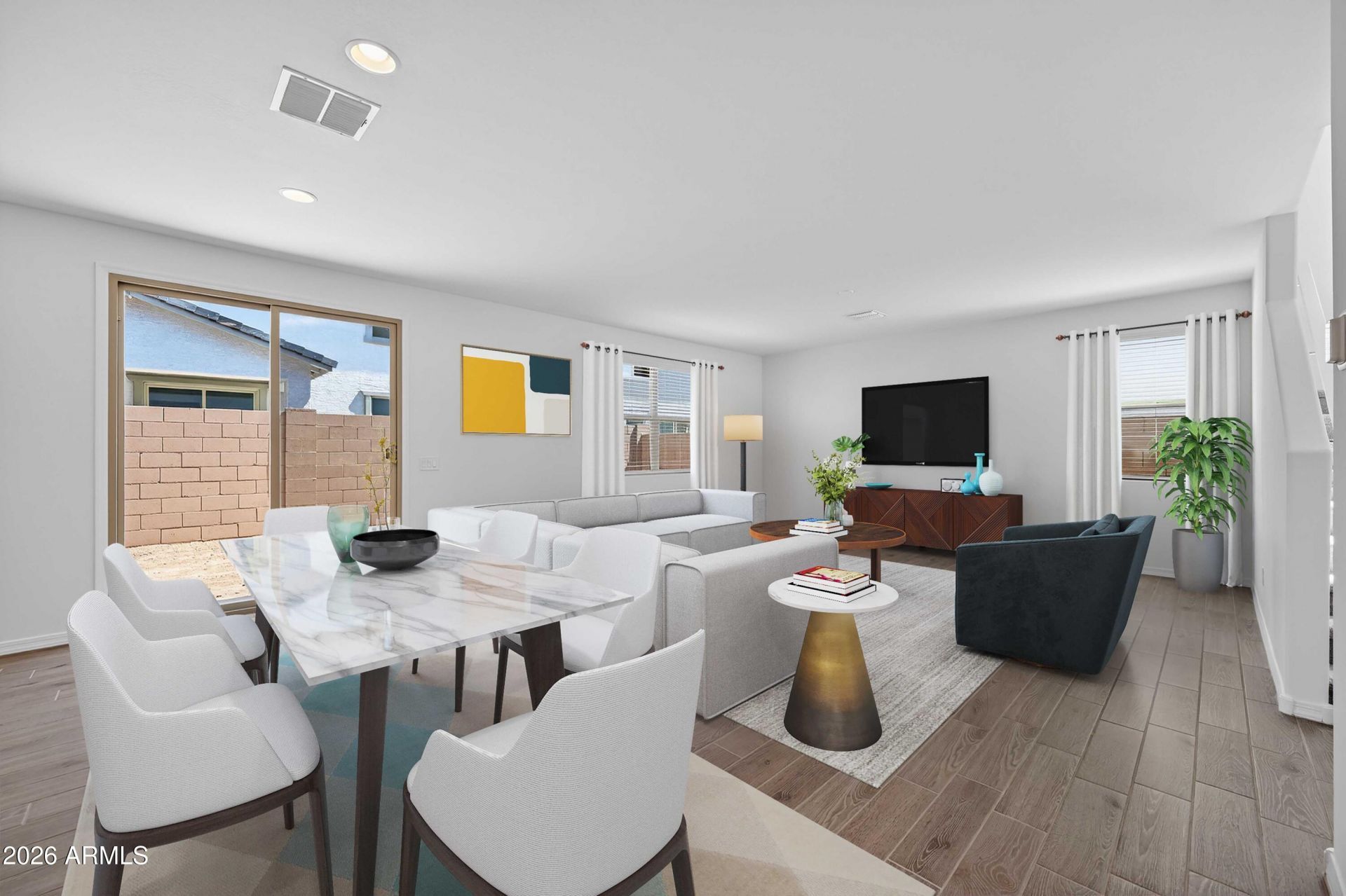 Whats Special: 1st Floor Guest Bedroom | Flex Room | Loft. New Construction - Ready Now! Built by Americas Most Trusted Homebuilder. Welcome to The Ellington at 25264 N 165th Lane in Asante. Step into a home that beautifully blends indoor comfort with Arizonas stunning outdoor scenery. The Ellington floor plan offers two stories, four bedrooms, three bathrooms, a two-car garage, and 2,511 square feet of thoughtfully designed living space. As you enter, youre welcomed by an open-concept layout where the spacious great room flows seamlessly into the dining area and gourmet kitchen with a central island--perfect for hosting guests or enjoying quiet evenings at home. Virtually staged photos are for representative purposes only. MLS#6901908 Near the entry, a private bedroom and bathroom offer comfort and convenience, while a versatile flex room can be tailored to your lifestyle, whether as a home office, gym, or creative space. Upstairs, youll find two additional bedrooms, a full bathroom, a laundry room, a cozy loft, and a luxurious primary suite. The private suite features a spa-inspired bathroom and an expansive walk-in closet, creating a peaceful retreat at the end of the day. Artisan at Asante is a vibrant master-planned community filled with amenities designed for connection and recreation. Enjoy a resort-style pool with lap lanes, a state-of-the-art fitness center, an aerobic room, and a spacious recreation center. Outdoors, youll find pickleball courts, a basketball court, generous green spaces, and a large seating area perfect for gathering with neighbors. Scenic walking paths throughout the community make every day feel like an adventure. Additional Highlights Include: quartz counters, stainless steel appliances, and window coverings, upgraded carpet. MLS#6901908
