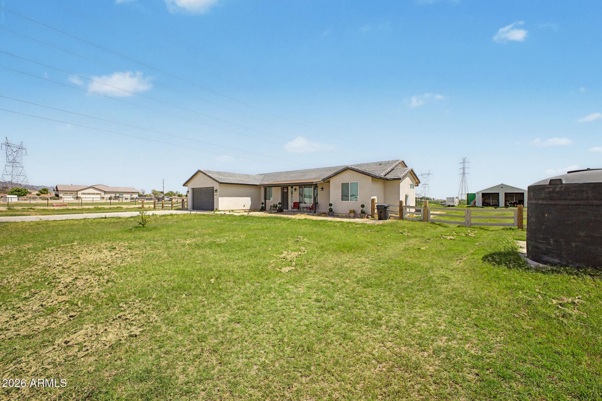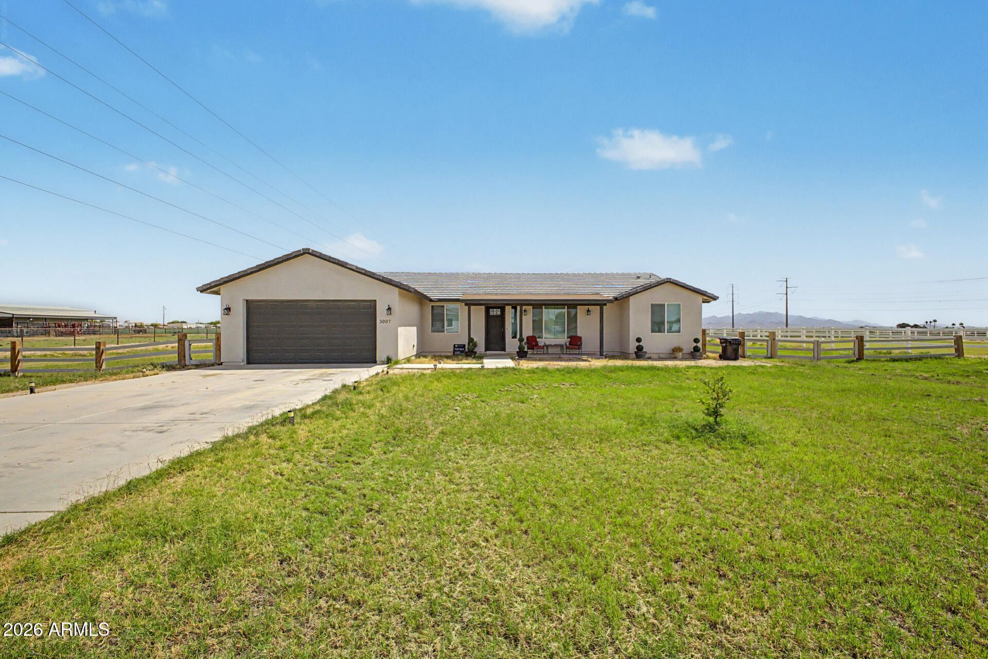 Enjoy the comfort of country living just minutes from town. Situated on a 1-acre irrigated lot, this home features an inviting great room with vaulted ceilings, wood-look tile, and plenty of natural light. The kitchen is appointed with 42 shaker cabinetry and quartz counters. The primary suite includes a walk-in closet, free-standing soaking tub, dual-head shower, and double vanities. PROPERTY INCLUDES A PRIVATE WELL