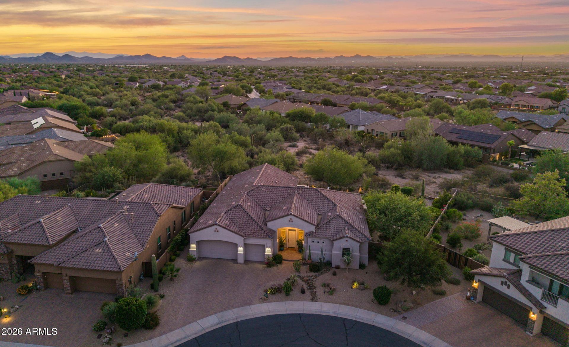 Located on a premium cul-de-sac in gated Lone Mountain, this 3,036 sq ft estate features 4 bedrooms, 3 bathrooms, & a private office. The interior offers an all-tile, carpet-free floor plan & gourmet kitchen with a 48 gas range, double ovens, and custom cabinetry. The primary suite includes dual walk-in closets & soaking tub. The resort-style backyard sits on nearly 1/3 acre with spectacular mountain and sunset views. Amenities include a new heated saltwater pool, spa, custom putting green, gas fireplace, & multiple producing fruit trees. The 3-car garage is equipped with an EV charging station. This luxury residence provides access to community parks and is perfectly situated for refined desert living in Cave Creek/North Scottsdale. Sophisticated finishes and panoramic vistas throughout SUPPLEMENTAL PROPERTY DETAILSKitchen & Interior AppointmentsChefs Kitchen: Professional-grade 48 gas range, double ovens, and custom cabinetry. The oversized island serves as a central hub for prep and social gatherings.Great Room: Open-concept design framed by large architectural windows to maximize natural light and the serene desert backdrop.Flex Space: Dedicated private office ideal for remote work. Formal dining room provides a refined space for hosting.Primary Suite: Features direct private patio access. The spa-like ensuite includes a large soaking tub and dual walk-in closets.Flooring: High-quality, easy-maintenance tile throughout the entire home--fully carpet-free for a modern, allergen-reduced environment.Outdoor Resort & LandscapingLot Position: Oversized cul-de-sac lot (just shy of 1/3 acre) oriented for unobstructed mountain views and Arizonas dramatic sunset displays.Water Features: Recently installed heated saltwater pool and spa with high-efficiency equipment for year-round enjoyment.Outdoor Amenities: Professional-grade custom putting green and a cozy outdoor gas fireplace area.The Orchard: Mature, producing fruit trees including [insert specific types, e.g., Meyer Lemon, Valencia Orange, or Fig], providing a lush, edible landscape.Garage & Tech InfrastructureEV Charging: The 3-car garage is equipped with a high-speed Level 2 EV Charging Station (220V/240V).Garage Features: Extra-depth 3-car layout providing ample space for larger vehicles, storage, or a home gym setup.Energy Efficiency: Optimized for the Arizona climate with a layout designed for natural airflow and light management.Community & LocationLone Mountain: Exclusive gated community with a low-density feel.Parks: Easy access to two private community parks featuring walking trails and green space.Proximity: Situated in the tranquil North Scottsdale/Cave Creek corridor, minutes from world-class golf, hiking at Pinnacle Peak, and premium dining.
