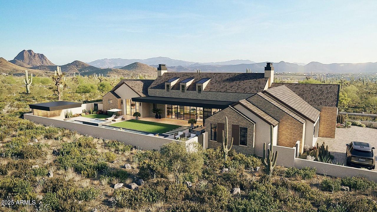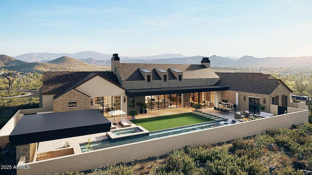 This one-of-a-kind custom estate in Verrado has been newly redesigned to deliver over 5600 sq ft of elevated luxury with an even smarter, more modern layout. Featuring 4 bedrooms and 5 baths, the home is crafted for comfort, elegance, and everyday livability. A private guest suite opens directly to the resort-style backyard, offering the perfect retreat for visiting family or friends. The gourmet kitchen flows seamlessly into a stunning great room with floor-to-ceiling glass that frames views of the beautifully updated outdoor oasis. A sparkling pool and spa, sunken ramada, and multiple entertaining spaces create an unmatched setting for gatherings and relaxation. Set against scenic mountain views and minutes from Verrados vibrant shopping, dining, and recreation, this reimagined estate now offers exceptional value at its new price. Construction can begin within 150 days, with financing options available.