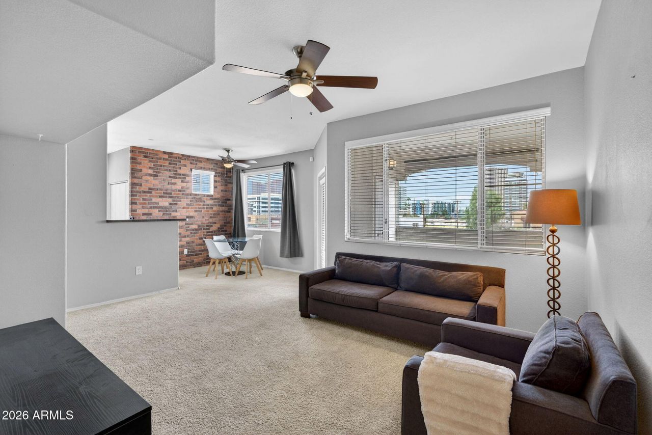 Welcome to effortless urban living in the gated Brick Commons community, ideally located in the heart of Midtown Phoenix.This well-maintained two-bedroom condo offers the perfect blend of comfort, convenience, and resort-style amenities without the congestion of Downtown or the longer commute from Uptown. The desirable split-bedroom floor plan features two true primary suites, each with its own full bathroom and walk-in closet, making it ideal for roommates, professionals, or those seeking added privacy.The open-concept living space flows seamlessly to a private balcony with city views, complete with an attached storage room perfect for relaxing or entertaining. Recent upgrades provide peace of mind, including a 2-year-old AC, newer water heater, new microwave, and a newer washer and dryer, making this home truly move-in ready.Residents of Brick Commons enjoy an impressive array of resort-style amenities, including a heated pool and spa, ramada and BBQ areas, and a clubhouse featuring a fitness center, putting green, billiards room, private cinema, and business center.The location is hard to beat, just minutes from multiple hospitals and medical campuses, ASUs Downtown campus, Phoenix College, dining, nightlife, shopping, golf, sports venues, public transit, and major freeways. This home is an exceptional opportunity for healthcare professionals, students, faculty, or anyone seeking smart, low-maintenance living in one of Phoenixs most connected neighborhoods.Midtown living at its best!