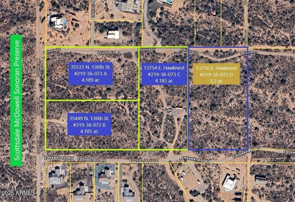 PRIME LAND! Rio Verde Foothills: 8+ ACRES. 2 parcels,APN #219-36-073 A, C. Bordering Scottsdale McDowell Sonoran Preserve, near Tonto National Forest! Panoramic mt. views, towering Saguaros, cool crisp air,starry nights,amazing sunrises & sunsets,underground power.Could be split in to multiple lots.Perfect for your dream home,spec. homes,or ranch.Views of 4 Peaks,Granite Mt., & other majestic mt. ranges.Water wells & new homes nearby.Can be purchased separatly: #219-36-073A, 4.189 ac, Borders preserve,$295K,MLS #6883793, #219-36-073C, 4.185 ac., level, $305K, MLS #6883785. Additional #219-36-073D, 5.2 ac.,$350K,MLS #6883779, sep. owner/sep. contract. Buy all 3 parcels and save!