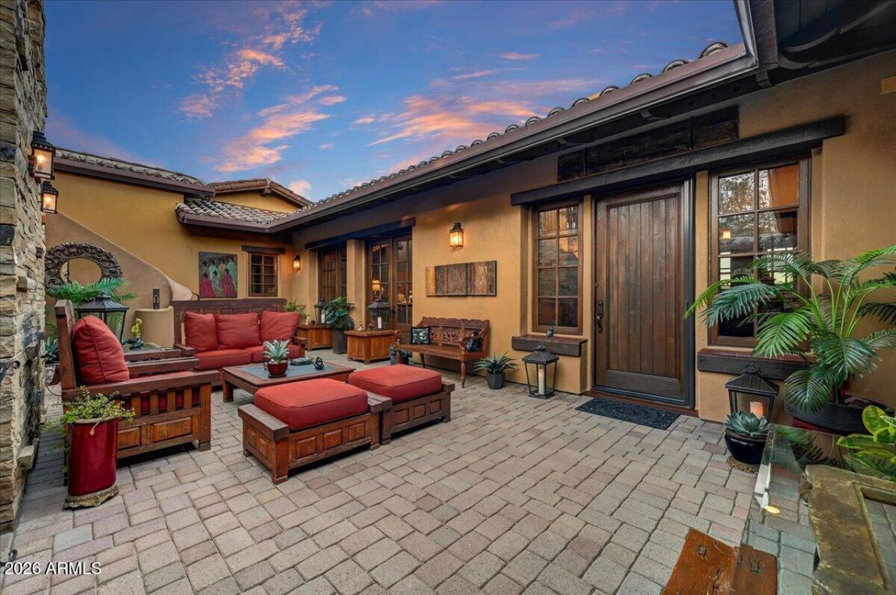 Thoughtfully expanded to enhance both livability and design, this Bright Angel Model in the prestigious community of Mirabel offers approximately 1,000 additional square feet of beautifully integrated living space. The added space includes a spacious family room/den, formal dining room, private office, 2 additional garage spaces (making it a 4 car total)and a luxurious primary suite sitting room--creating the perfect blend of comfort and functionality. Bamboo flooring flows throughout the home, adding warmth and sophistication.At the heart of the home, the chefs kitchen is designed to impress, offering generous workspace, premium appliances, and seamless flow for both everyday living and entertaining.The private casita offers exceptional flexibility--perfect for guests- the space could be used as an art studio, exercise room, or a quiet retreat--adding even more to the property.Step outside to a massive backyard retreat featuring a resort-style pool and spa, expansive patio areas, a poolside cabana, and a large fireplace sitting area--ideal for relaxing or hosting under the Arizona sky. A private courtyard entry adds charm and additional outdoor living space.An exceptional opportunity to enjoy elevated desert living in one of North Scottsdales most sought-after communities.