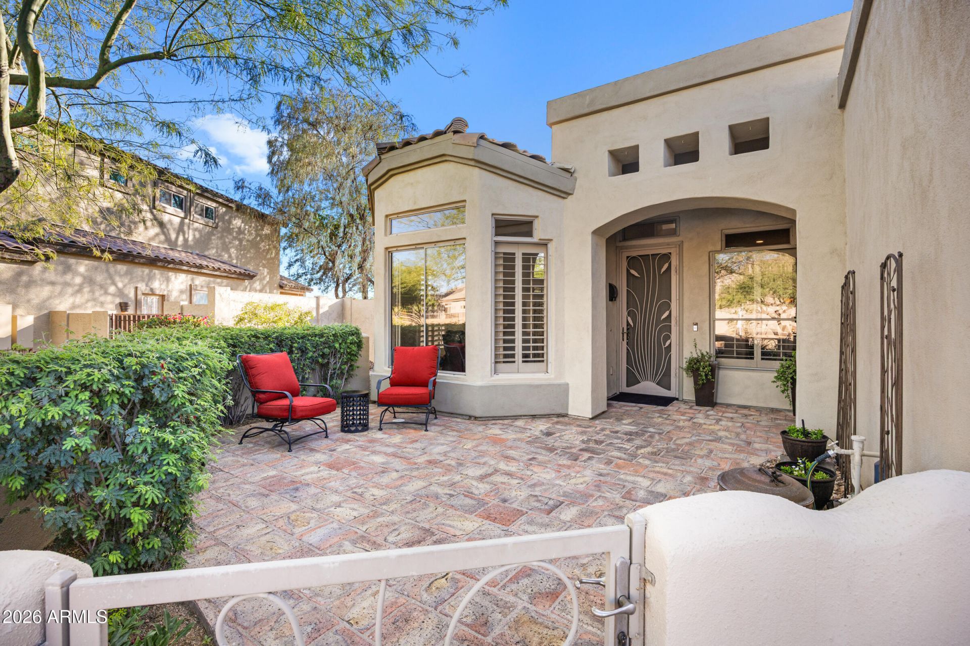 Upgraded single level home on a LARGE cul de sac lot w/VIEWS. This home sits on a 11k+ sq ft lot & offers upgrades including: New Backyard 2024-2025- Pool, Spa, Turf, + extended travertine paver patio, viewing deck w/180 degree views of city lights, sunsets, Camelback Mountain, Red Mountain, motorized patio shade cover 2024, upgraded kitchen (2024)- counters, cabinets, sink, hardware, appliance package, upgraded master bath shower, vanity, + counters, upgraded flooring thru out, plantation shutters, garage storage, fenced courtyard w/gated entry, new landscape drip line system, and more. Las Sendas is an award winning, gated, golf course community in the desert uplands of north east Mesa. Stunning views, great golf, multiple pools, spa, fitness center, schools, parks, playgrounds, and more