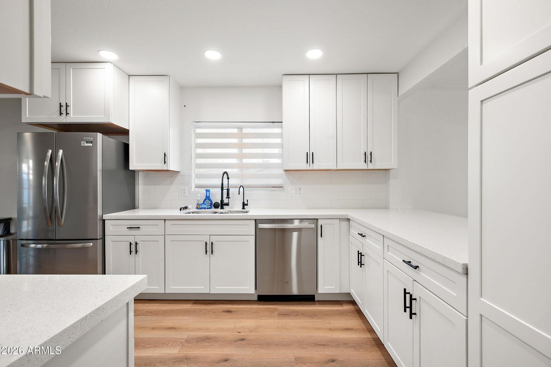 This beautiful 3 Bedroom and 2 bath home is move in ready. Updated items are Air Conditioning unit, roof updated. Flooring is luxury vinyl, White Shaker Cabinets, bathroom vanities, all plumbing faucets and sinks, updated bathrooms, ceiling fans, two panel doors. Quartz Countertops. Epoxy finished garage features heating and cooling in the garage. Updated windows and garage door opener. Home is close to the 51 freeway. Minutes from Downtown Phoenix. A MUST SEE. Make this your new home!