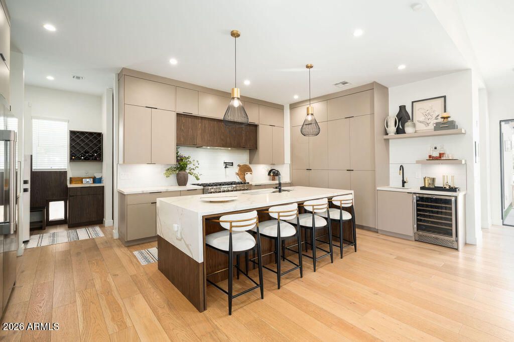 This property is beautifully designed 2022 build home offering modern luxury in an unbeatable location. Featuring 4 bedrooms, 4 bathrooms and dedicated office with an optional second office space/sitting room in the primary suite. This home blends style, comfort and functionality. Inside you will find hardwood floors throughout, high-end finishes, and a bright open-concept layout ideal for everyday living and entertaining. The backyard is a true retreat, complete with sparking pool, hot tub, and fireplace-perfect for enjoying Arizona living year round. Ideally situated in the heart of Arcadia Lite, it is walking distance to La Grande Orange, North Italia, Chelseas Kitchen, Kachina park and much more. This home offers the best of convenience, dining and lifestyle!