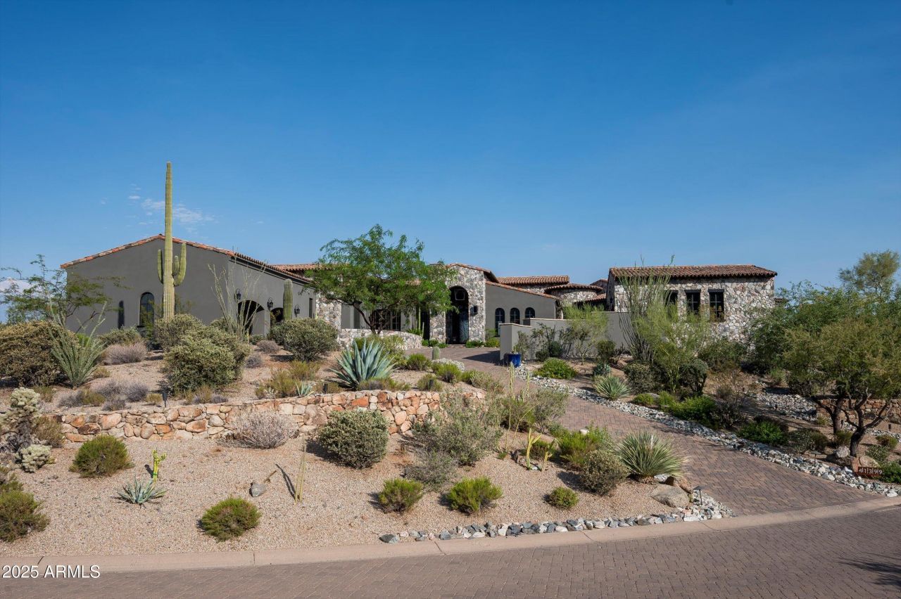 Immediate access for Golf Membership to the Desert Mountain Club! This transitional estateon 1+ acres overlooks Chiricahuas 10th fairway and southeast exposure with covetedPinnacle Peak views. Timeless architecture features an open plan with light-filled spaces and breathtaking mountain and desert views throughout. An ideal year-round retreat, the open Great Room plan offers single-level living with no interior steps, soaring ceilings, entertaining bar with hearth, cozy study and expansive glass doors that open seamlessly to the resort-style outdoor spaces. The chefs kitchen boasts a walk-in pantry, expansive island with counter seating. and a sunny breakfast nook. The split plan features a magnificent primary suite ... with a private patio, hearth, spa bath plus dual closets. The private guest wing features 3 spacious suites, the largest an apartment-style attached 2 room casita with its own sunset patio and garage access. The spacious main patio features a stunning pool/spa with sunning deck, fire pit lounge, covered outdoor kitchen with bar seating, covered dining and pet turf area with dog run. Designer lighting throughout and extensive use of Taj Mahal granite counters. 4-car garage (double 2-car garage) and generous auto court. Impeccably maintained. All in world-renowned Desert Mountain, a double-gated community featuring 7 golf courses, 10 restaurants, pickleball, tennis, bocce, croquet, 20+ miles of private hiking trails and myriad of year-round club activities for the entire family. Additional amenities include an on-site Honor Health concierge clinic, private roads, on-site 24-hour security with manned gates, and a professionally managed HOA. Allow 30 days for the Clubs application and required approval process.