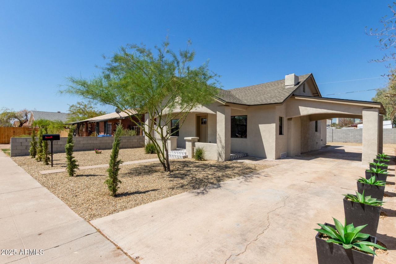 A rare find! Discover this beautiful upgraded home where style and functionality come together in perfect harmony! From the moment you arrive, you will immediately notice carport parking, mature landscape, and a cozy front porch. Youll surely love the inviting living & dining room that beckons you to unwind. Abundant natural light, ceiling fans, wood-look flooring, and fresh neutral paint create a warm, upscale ambiance. Updated kitchen offers recessed lighting, stainless steel appliances, tile backsplash, cabinets & wall-mounted shelves, sleek quartz counters, and a convenient breakfast bar. Serene main retreat features a walk-in closet and a pristine ensuite with dual sinks. Enjoy outdoor living in the spacious backyard with an open patio. This turn-key gem is ready for you to move in!
