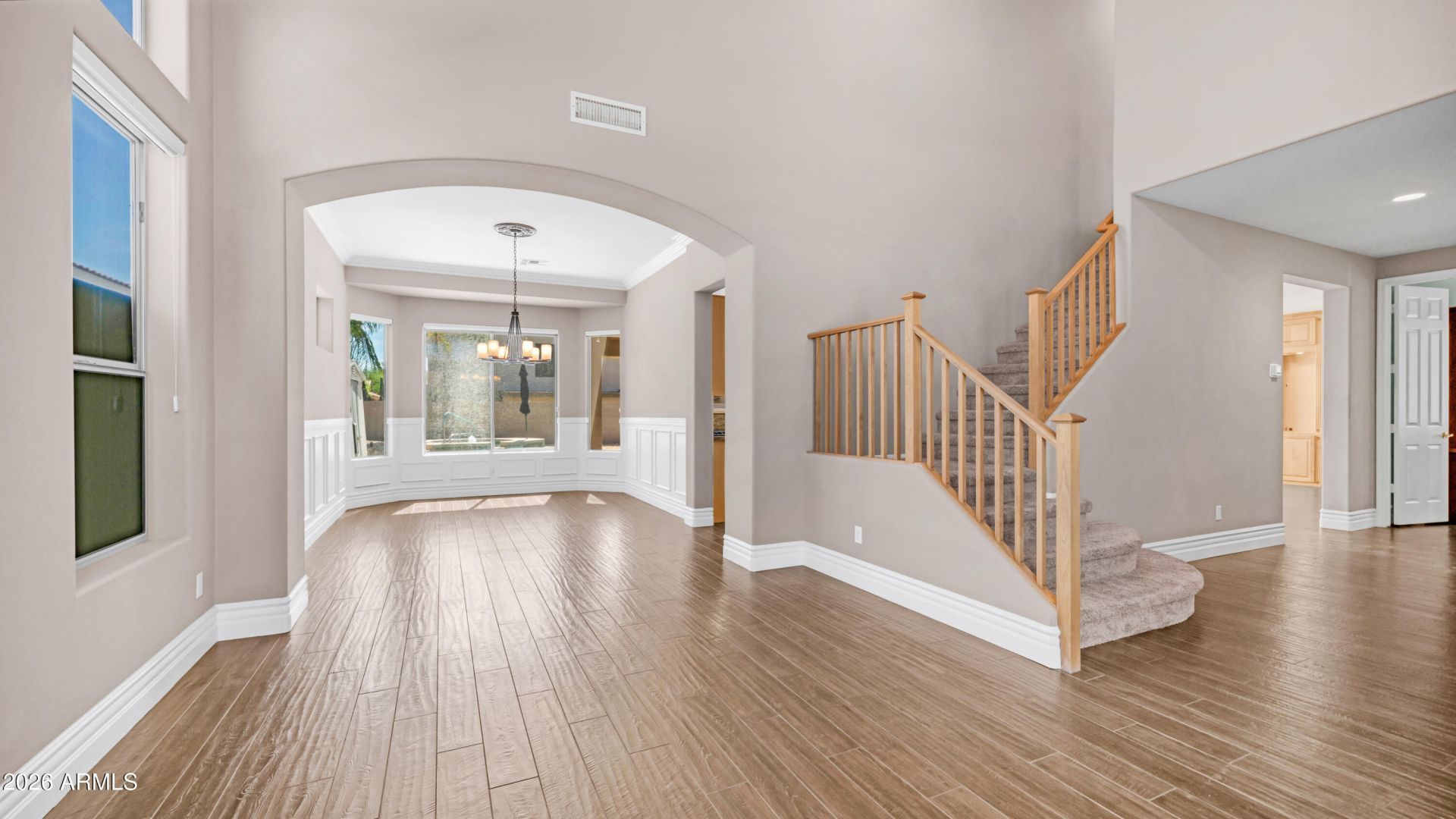 Beautiful home in the desirable Tesoro subdivision of Cave Creek offering 2,950 sq ft, 4 bedrooms, and 3 full baths. Spacious floor plan features a downstairs den with built-ins (can convert to bedroom) and an upstairs loft for added flexibility.The kitchen includes granite countertops, maple cabinetry, and opens to living areas with wood-look tile flooring throughout the entire downstairs. Step outside to a private backyard with a pool and heated spa--perfect for entertaining.Additional highlights include a 2-year-old HVAC system, 10-year-old roof, and a 3rd car garage conversion completed by the builder, currently used as a flex/music room.