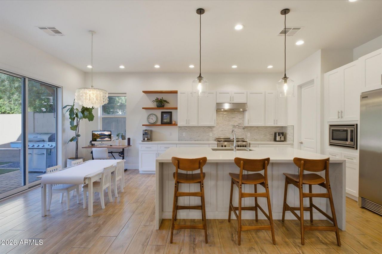 Rare opportunity to own a newer single-level home in the heart of Arcadia Lites coveted 85018 within the Hopi Elementary district. Built in 2018, this modern custom offers 2,801 sq ft with 4 bedrooms, 3 baths, and a private den. High ceilings and three oversized sliding glass doors create seamless indoor-outdoor living filled with natural light. The kitchen features vented gas cooking, an oversized island, and walk-in pantry opening to the great room. The backyard features a heated pool and spa with electric cover, turf yard, patio cover, and ideal north/south exposure. Walk to Kachina Park, LGO, and Postino with canal paths nearby for miles of running or biking. Minutes to Camelback Mountain, the Biltmore, Sky Harbor Airport, and near the Phoenix Suns training facility.