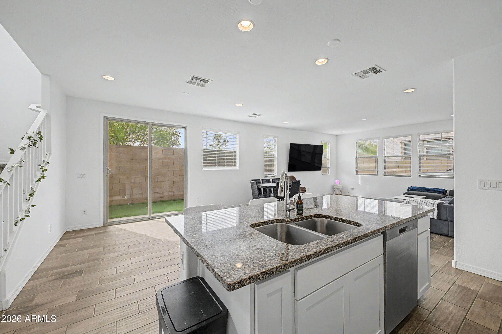 Step into this open concept three bedroom, two and a half bath home perfectly positioned on a premium corner lot. The main level features wood tile flooring throughout and a well appointed kitchen with granite countertops, center island, gas stove, and ample storage, ideal for both everyday living and entertaining. A convenient half bath downstairs is perfect for guests. Upstairs offers a versatile loft, plush carpet, and a spacious primary suite with double sinks, walk in shower, and oversized walk in closet. Upstairs laundry adds ease. Enjoy low maintenance turf in the backyard and side yard, a two car garage, community pool and playground, walking distance to Maricopa Institute of Technology, and easy access to the 202 and I10.