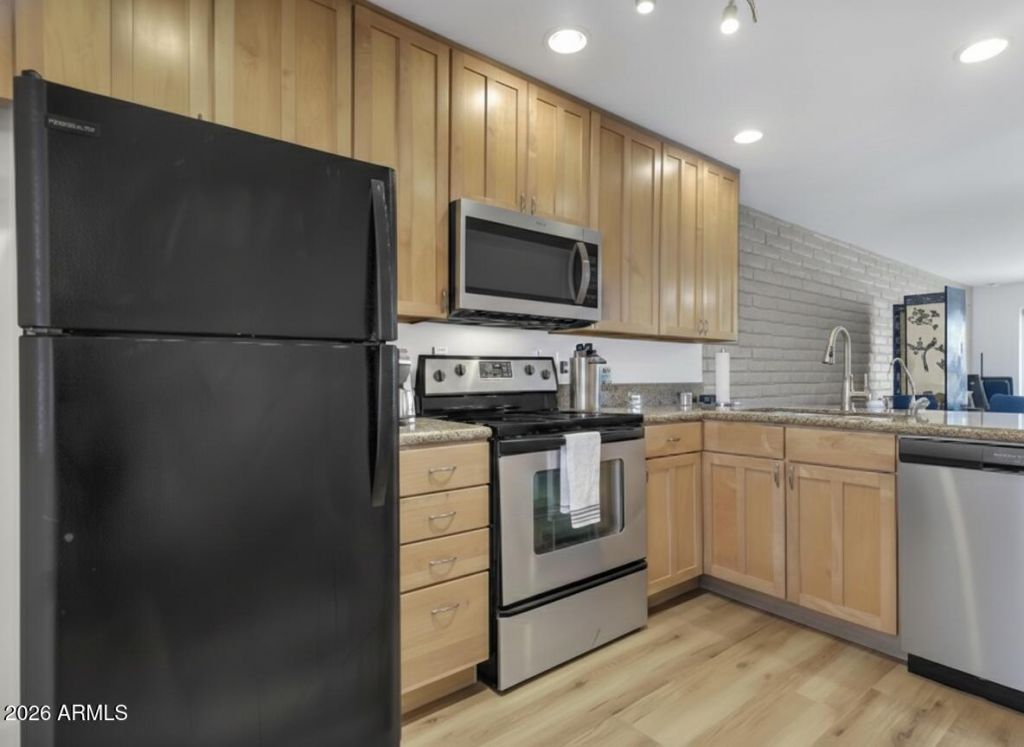 Scottsdale living with privacy and convenience! This ground-floor condo is minutes from Old Town yet tucked into a quiet spot across from the main interior walkway. Inside, the open layout connects living, dining, and kitchen for easy everyday flow. Fresh upgrades include all new flooring, new interior paint, plus a new microwave and dishwasher alongside stainless steel appliances. Two primary-style suites give flexible living, and the private patio faces the greenbelt for a calm outdoor escape. Major systems are covered with a brand new water heater and newer AC. Enjoy resort amenities: pool, spa, BBQs, fitness center, library, and extra laundry facilities. A true lock-and-leave home, ideal full-time, seasonal, or as a rental near everything with quick access to dining, shops, and trails!