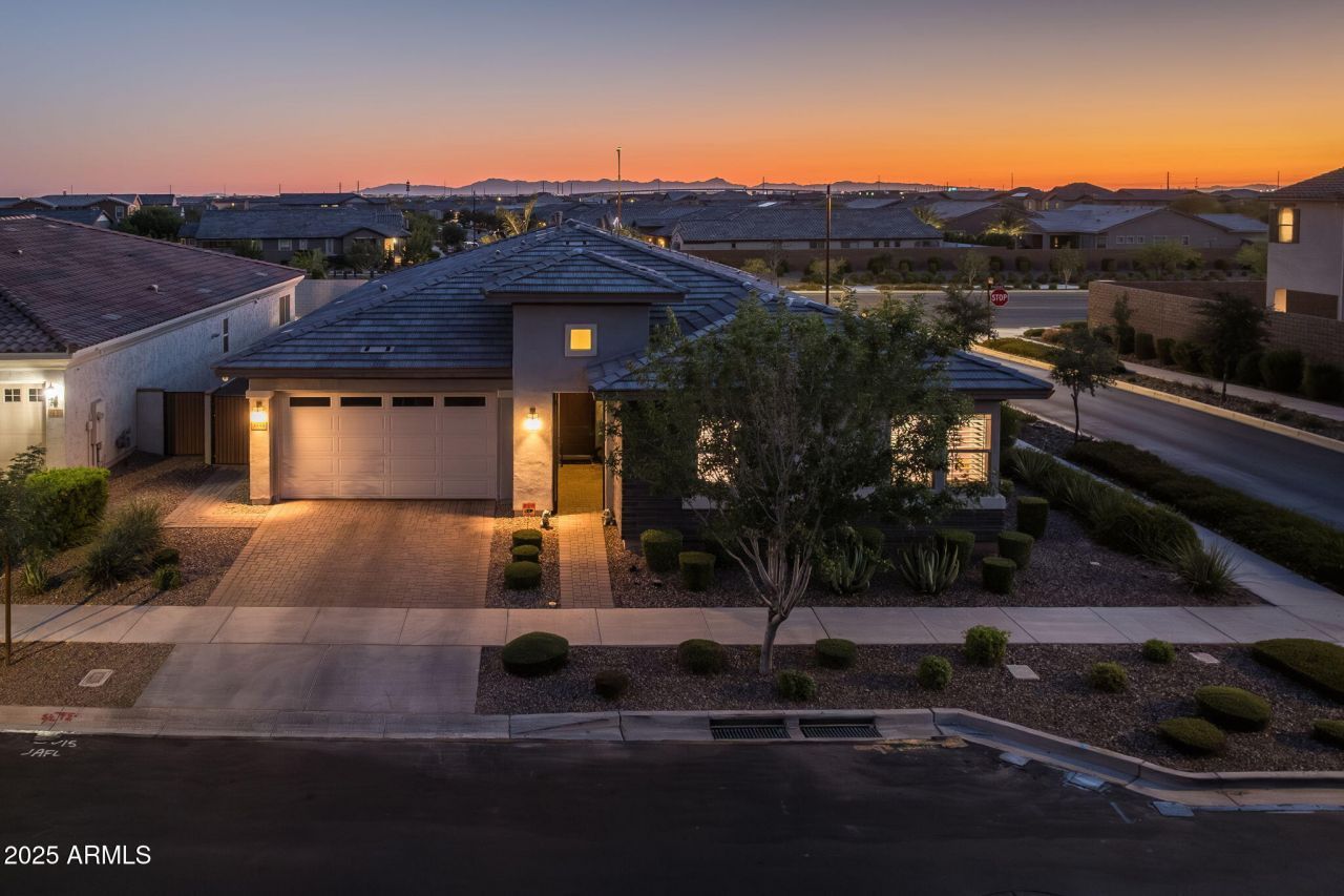 Price Improvement in Eastmark. A rare opportunity to own a resort-style backyard at a new value. This upgraded home features a saltwater heated pool, waterfalls, fire features, and a private outdoor space built for Arizona living and entertaining. Inside offers 4 bedrooms, 3.5 bathrooms, flex space and an office across 2,944 sq ft. The gourmet kitchen includes granite counters, double ovens, abundant cabinetry, and an oversized island. Plantation shutters, modern lighting, upgraded flooring, surround sound and ethernet wiring elevate the home. The finished 3-car garage features epoxy floors, overhead storage, Tesla charger, and whole-home water filtration with RO. Solar-ready, security equipped, and move-in ready on a premium corner lot in sought-after Eastmark. This one wont last long.