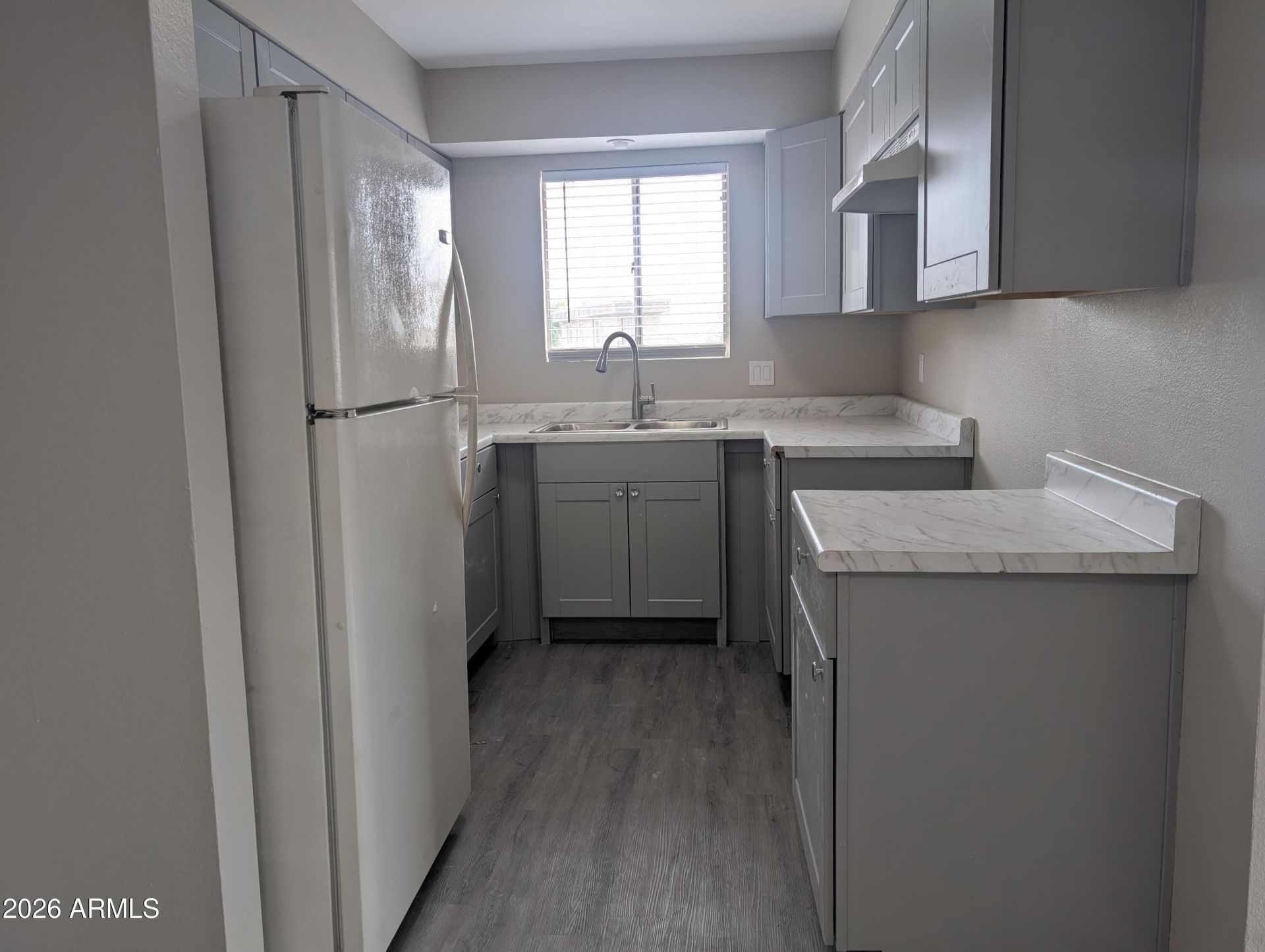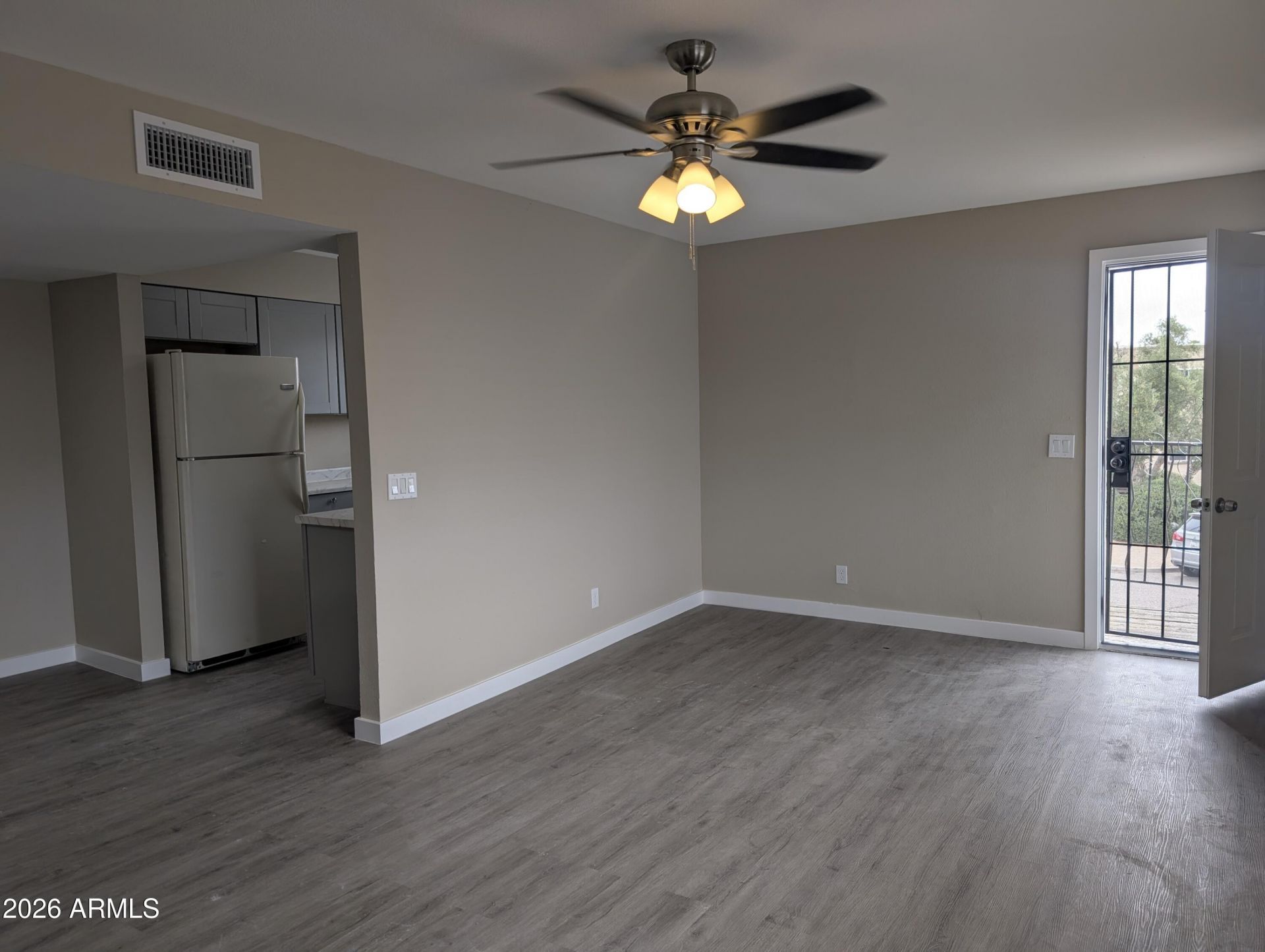 Bright, airy, and beautifully remodeled--this move-in ready 2 bed, 1 bath condo offers stylish, low-maintenance living in the heart of Phoenix. Natural light pours into the open living space, highlighting updated flooring, fresh interior paint, and a clean, modern design throughout. The kitchen shines with contemporary cabinetry, sleek countertops, and updated fixtures, creating a fresh and functional space. The bathroom has been thoughtfully refreshed with crisp, modern finishes and a light, spa-like feel. Both bedrooms are well-sized and filled with natural light, offering comfortable, peaceful retreats. Enjoy a single-level interior with no stairs inside, accessed by an exterior staircase leading to a private entry. Ideally located near all major frefreeways, shopping, and dining.