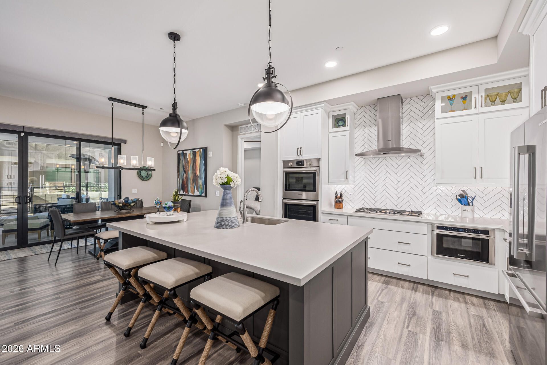 Welcome to THE LUXE AT DESERT RIDGE, one of North Phoenixs most sought-after LUXURY condominium communities, offering an exceptional blend of contemporary design, resort-style amenities, and an unbeatable location in the heart of Desert Ridge. Located moments away from Desert Ridge Marketplace, High Street, championship golf, fine dining, and upscale entertainment, this sophisticated residence delivers a premier TURN-KEY LIFESTYLE in one of Arizonas most desirable neighborhoods. Step inside this beautifully appointed home to experience an open-concept floor plan defined by clean architectural lines, abundant natural light, and seamless indoor-outdoor living.The spacious great room is ideal for both everyday comfort and stylish entertaining, featuring a cozy GAS FIREPLACE & oversized SLIDING GLASS DOORS that open to a private terrace. This outdoor living space is designed for year-round enjoyment, featuring a patio positioned to avoid direct afternoon sun, ensuring a comfortable temperature in every season. It is perfect for al fresco dining or taking in serene desert evenings. Additionally, for those seeking a seamless transition, this home is available fully turn-key; the high-quality furniture is available for purchase or is included with an acceptable offer.The CHEF-INSPIRED KITCHEN is designed for those who love to cook and host, showcasing a generous ISLAND WITH BAR SEATING, QUARTZ COUNTERTOPS, custom cabinetry, designer lighting, and HIGH-END STAINLESS STEEL APPLIANCES including a gas cooktop. Every detail enhances both the beauty and functionality of the space.The serene primary suite provides a true retreat, complete with DIRECT TERRACE ACCESS and a SPA-INSPIRED EN-SUITE BATH featuring dual vanities, quartz surfaces, and a walk-in closet. A small den adds extra flexibility ideal for a home office, reading nook, or hobby space while carefully crafted secondary areas offer comfort for guests. Throughout the home, youll find ceramic and porcelain tile in all the right areas paired with luxurious high-end carpet in the bedrooms.Life at The Luxe is enhanced by truly resort-style amenities. Residents enjoy an OLYMPIC-SIZE POOL AND SPA, outdoor GAS FIRE PITS, a state-of-the-art FITNESS CENTER, and an INFRARED SAUNA. The stunning resident clubhouse offers a CHIC LOUNGE, MOVIE ROOM, and catering kitchen. This home includes NOT 1, BUT 2, ASSIGNED UNDERGROUND PARKING SPACES and a PRIVATE STORAGE ROOM.Additional community highlights include a GUARD-GATED ENTRY and unbeatable proximity to Loop 101 and Mayo Clinic. Whether youre seeking a full-time residence or a seasonal retreat, this home at The Luxe delivers modern luxury, convenience, and a FULLY TURN-KEY EXPERIENCE unmatched in the Valley.