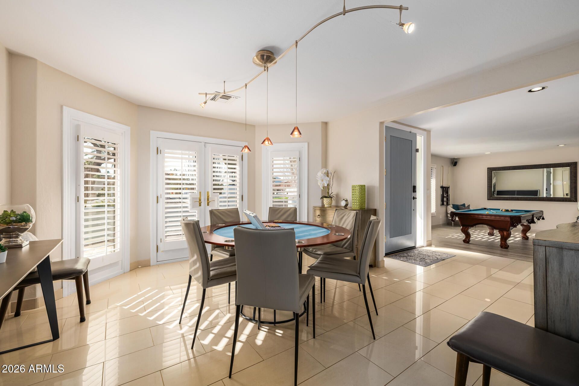 Remodeled home. Kitchen opens to great room with stunning 24 foot expansive ceiling to floor folding doors that open the entire wall combining the outdoors with this great entertainment room with an additional 8 collapsing door on east wall. Chefs kitchen featuring Wolf Range, Sub-Zero Refrigerator, Leather Finish Granite Counters on EXTRA LARGE Island and Miele Dishwasher. Recently remodeled play pool with all up to date remote operated heated pool equipment! Stone concrete decking, gas firepit, outdoor kitchen with sink, fridge and gas bbq .Master & guest bathroom remodeled(2019).Conveniently located near Kierland Commons and the NEW PV Reimagined Center. Premium interior lot with lots of privacy afforded from neighboring lots.All this and some of the BEST PUBLIC SCHOOLS !