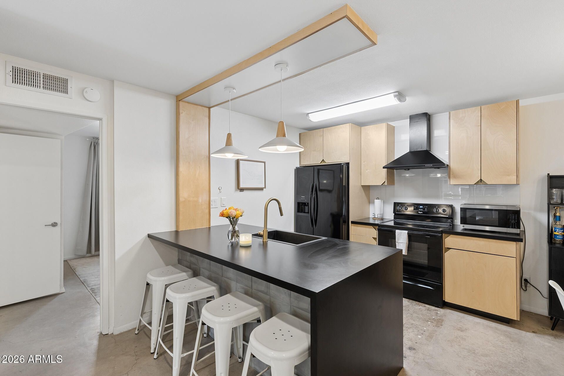 Welcome to this one-of-a-kind, design-forward condo in the Arcadia area -- where modern minimalism meets thoughtful craftsmanship. This rare corner unit was curated by a local designer/builder, featuring custom European cabinetry, handmade concrete tile, and a striking steel fireplace that anchors the space with architectural character.Clean lines and chic concrete flooring create a seamless, modern aesthetic, while stylish countertops and intentional finishes elevate everyday living. Every detail has been carefully considered, making this home as functional as it is visually stunning.Perfectly positioned on the edge of Scottsdale, youre just minutes from some of the Valleys best--dining hotspots, Papago Park, Camelback Mountain, the Phoenix Zoo, Spring Training, and Scottsdale Fashion Square.The community offers resort-style amenities including a heated pool and spa, BBQ grills, fitness equipment, laundry facilities, and even a ping pong table for a little added fun. Plus, enjoy the convenience of two parking spaces, including one covered spot.Previously operated as a successful rental, this property offers flexibility for a variety of buyers--whether youre looking for a primary residence, lock-and-leave, or investment opportunity.