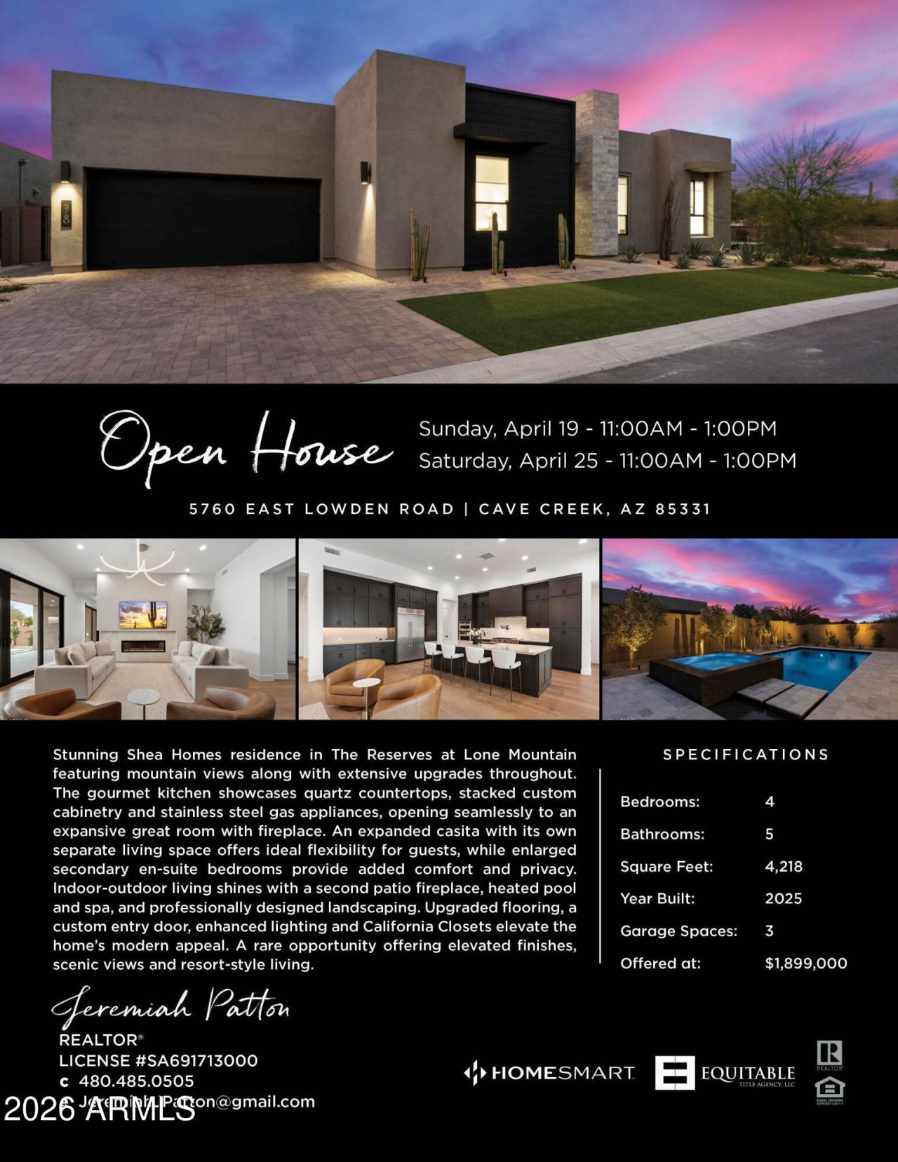 Price Improvement. New construction 1-year builder warranty transfers through mid-July. Stunning Shea Homes residence in The Reserves at Lone Mountain with mountain views and extensive upgrades throughout. Gourmet kitchen features quartz countertops, stacked custom cabinetry, and stainless steel gas appliances, opening to an expansive great room with fireplace. Expanded casita with separate living space offers flexibility for guests, while enlarged en-suite secondary bedrooms add comfort and privacy. Enjoy indoor-outdoor living with a second patio fireplace, heated pool and spa, and professional landscaping. Upgraded flooring, custom entry door, lighting, and California Closets enhance the home.