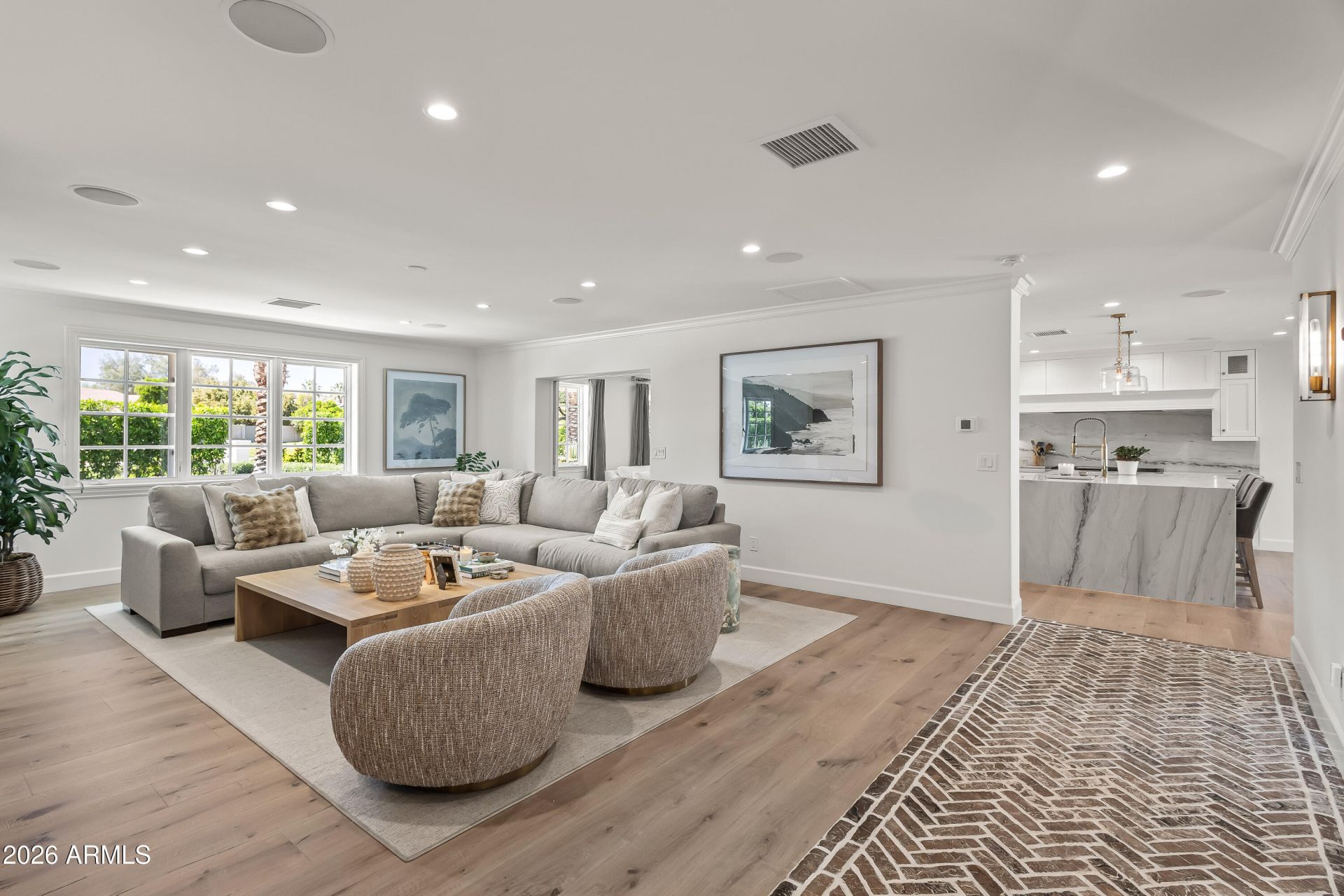 Situated in the heart of Paradise Valley on an expansive 0.83-acre lot, this fully reimagined estate offers a rare blend of refined design, modern functionality, and resort-style living. Surrounded by lush, mature landscaping and framed by mountain views, the home delivers both privacy and proximity-just minutes from world-class resorts, golf, fine dining, Old Town Scottsdale and Fashion Square. Extensively renovated with a comprehensive, high-quality transformation, nearly every surface, system, and finish has been thoughtfully curated to create a cohesive, move-in-ready residence. Interior finishes include new hardwood flooring, designer lighting and fixtures, fresh paint and wallpaper, enhanced millwork, and refined architectural details throughout. The living room is anchored by a relocated fireplace with custom stonework, adding warmth and visual impact. The redesigned kitchen serves as the centerpiece of the home, featuring custom cabinetry, striking stone countertops with a full-height backsplash, a waterfall-edge island, and top-tier appliances including Sub-Zero, Wolf, and Bosch. A beautifully updated butlers pantry and custom California Closets pantry provide exceptional functionality and storage. The private guest suite offers its own sitting area, built-in cabinetry, and mini refrigerator--ideal for extended stays or multigenerational living. All bathrooms have been thoughtfully renovated, including a luxurious primary suite with elevated finishes and sophisticated detailing. Designed for seamless indoor-outdoor living, the backyard has been transformed into a true retreat, complete with a fully renovated pool, expanded patio, new spa, outdoor kitchen, cedar outdoor shower, and multiple gathering spaces enhanced by all-new landscape and exterior lighting. Additional upgrades include a whole-home water filtration system, integrated AV and security systems, new skylights, and a redesigned front entry with a standing seam metal roof. The extensively renovated grounds feature new irrigation and curated plantings, including palms, oaks, olive hedging, and over 100 sour orange trees. A fully upgraded 4-car garage with epoxy flooring, custom cabinetry, sink, and enhanced lighting completes the property. This is a rare opportunity to own a turnkey, design-forward home in one of Paradise Valleys most desirable locations.