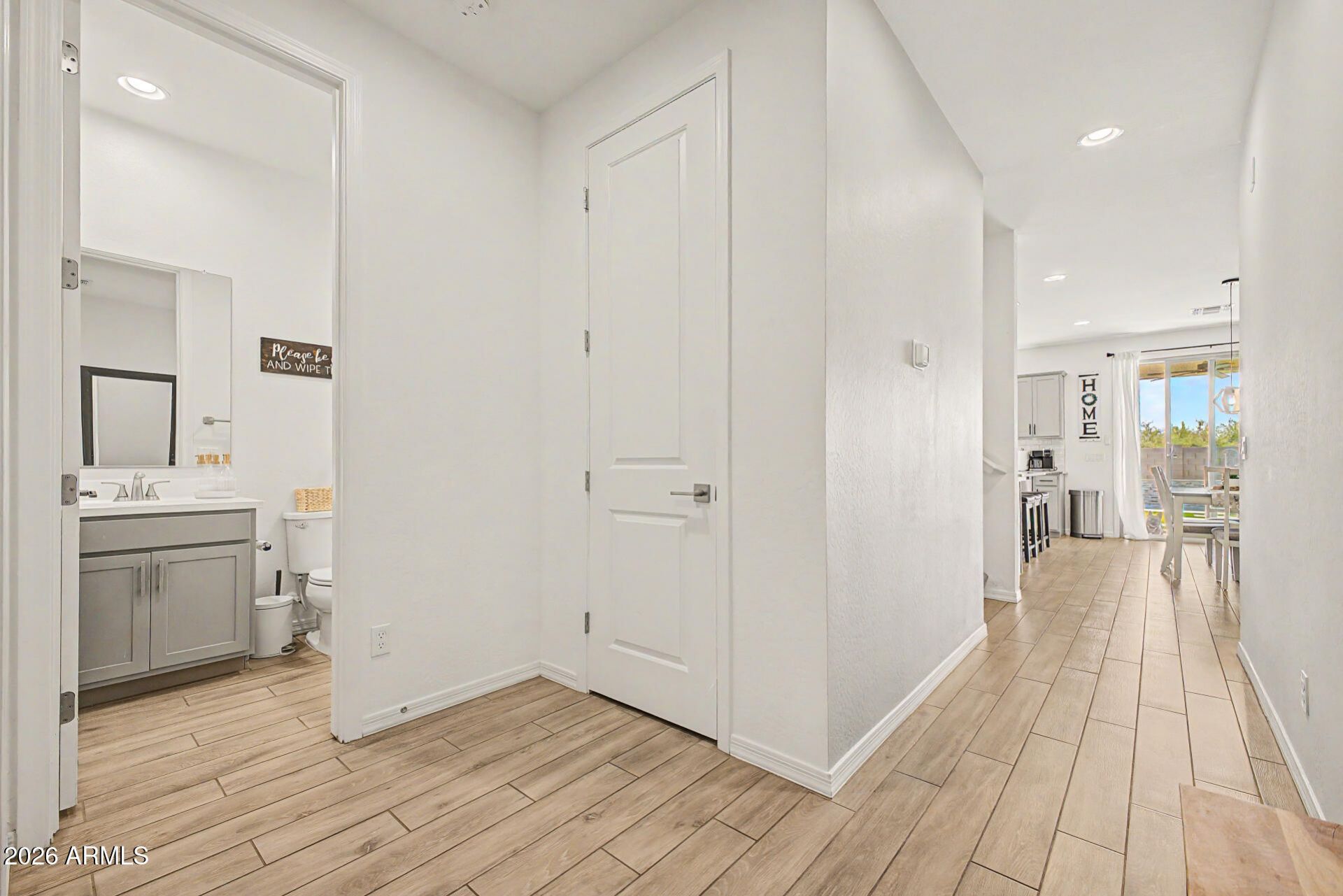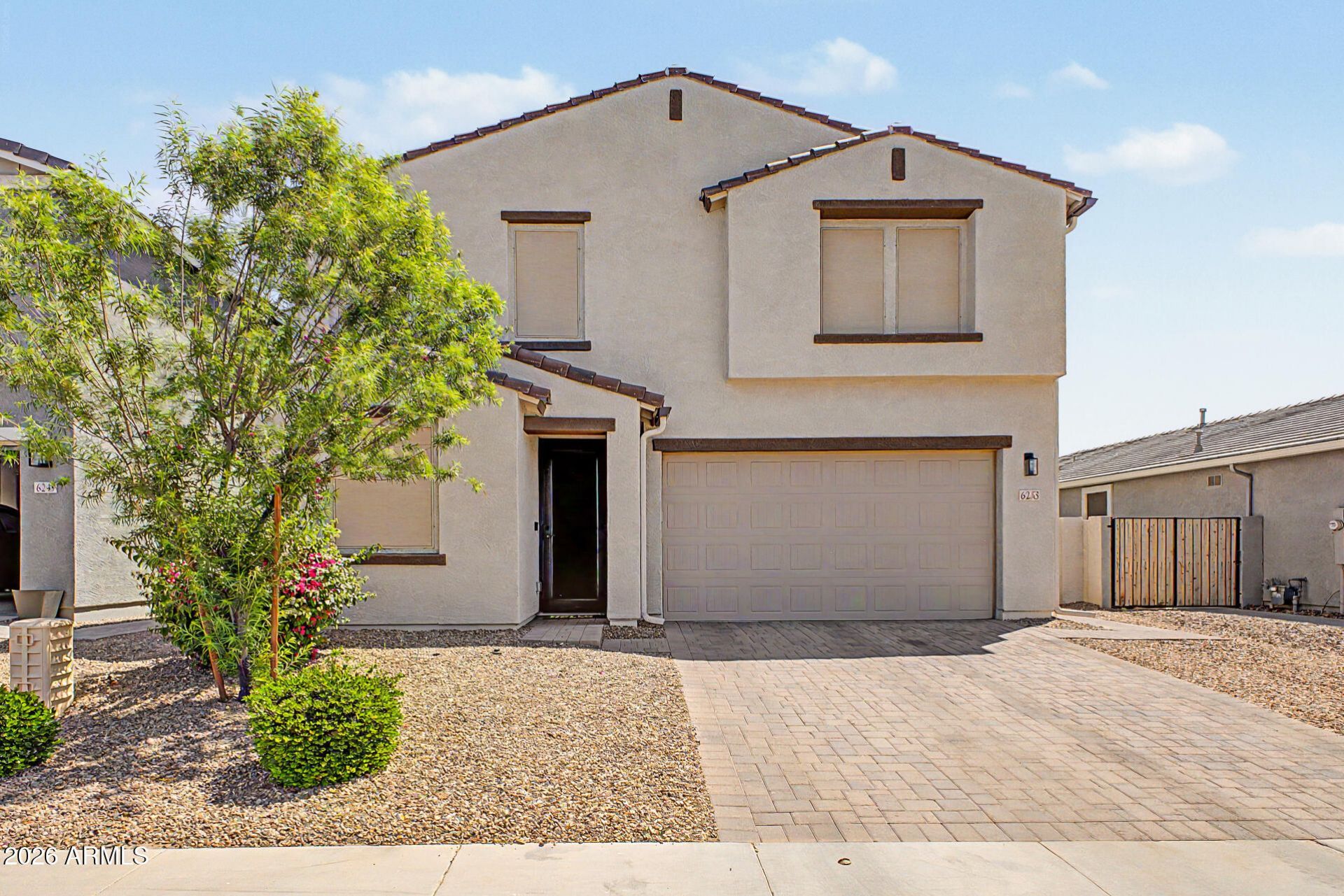 Situated in a rapidly growing area, this home offers the opportunity to own a newer home without the wait of new construction. The floorplan includes 4 bedrooms and 3 full bathrooms, with a convenient first-floor guest bedroom ideal for vistors or multi-generational living. Upstairs the additional guest rooms feature walk-in closets, while the expansive primary suite is complete with an oversized shower, double vanity, and walk-in closet. The kitchen is gorgeous and functional featuring gray shaker style cabinets with black hardware, a large pantry, and granite countertops. The backyard is an entertainers dream featuring a covered patio and a beautiful new heated pool and spa with stunning waterfall features. Close to dining, freeway, parks, and Arizona Athletic Grounds!