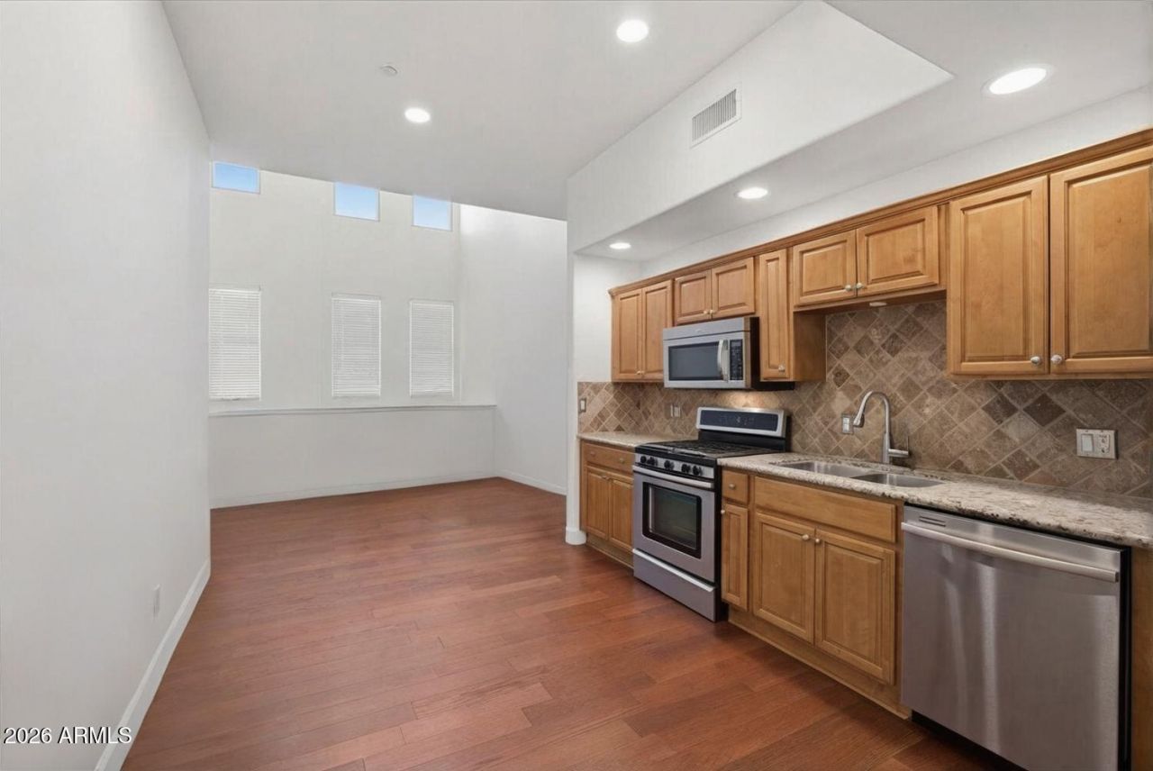 1% FLEX CREDIT TO BE APPLIED TOWARDS CLOSING COSTS OR RATE BUYDOWN, OFFERED BY PREFERRED LENDER FOR QUALIFIED BUYERS. Experience modern urban living in the heart of Tempe with timeless Brownstone architecture and a walk-up front porch perfect for morning coffee or evening gatherings. This three-level residence offers a versatile first-floor flex space with full bath and closet, ideal as a guest suite, home office, or second bedroom. The main living level features soaring ceilings, abundant natural light, hardwood flooring, and a well-appointed kitchen with granite countertops, SS appliances, and walk-in pantry. The third-floor primary suite includes a walk-in closet, updated bath, and private balcony retreat. Just moments from ASU, Mill Avenue, & Tempe Town Lake.