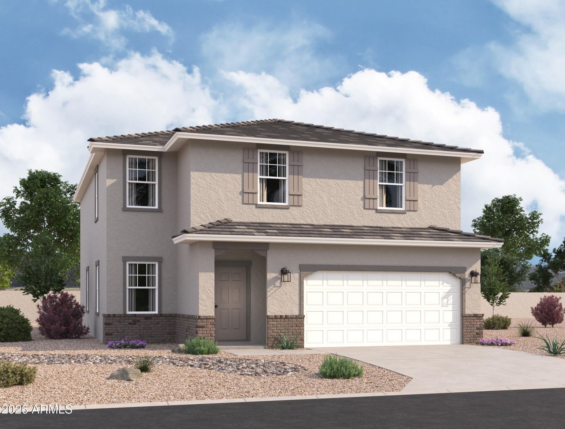 Beautiful, brand-new home located in the highly desirable West Valley community of Laveen, offering convenient access to Loop 202 and I-10. This thoughtfully designed home features 9 ceilings on the first floor, White Shaker cabinetry, Shaw 17x17 tile throughout main living areas on the first floor, and plush carpet in bedrooms and closets. The kitchen is complete with granite countertops and a full stainless steel appliance package, including a refrigerator, washer, and dryer, truly move-in ready. Energy-efficient features include Low-E dual pane windows and a WiFi-programmable thermostat for added comfort and savings. The exterior offers low-maintenance desert landscaping with irrigation, a covered patio, and a spacious, private backyard perfect for relaxing or entertaining. The community offers a playground, picnic areas, and scenic walking paths. Ideally located near schools, shopping, dining, and Estrella Mountain Regional Park, this home combines comfort, convenience, and lifestyle.