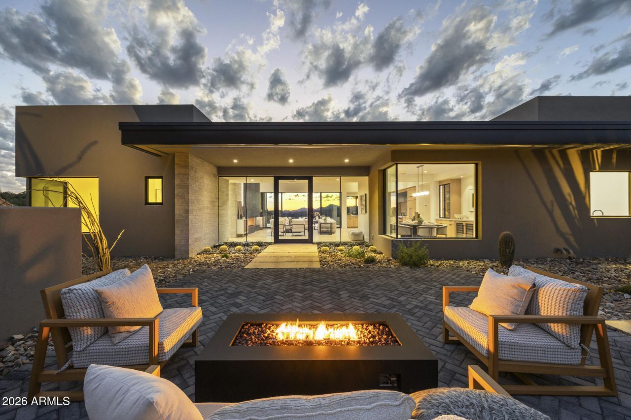 **Under construction masterpiece in Echo Canyon Estates**, which was inspired by their model home, this home is designed with the exciting addition of expanded room sizes.Discover the epitome of modern desert luxury in this exquisite single-story residence just north of the heart of Cave Creek. Set privately in the back canyon along a serene creekside in a peaceful cul-de-sac end of the road lot on a generous 4.5-acre parcel. This thoughtfully designed home will capture panoramic mountain vistas and the serene beauty of the Sonoran Desert.Encompassing **3,712 sqft** in the main house (thanks to our increased room sizes for even more spacious living). The open-concept layout will seamlessly integrate elegance and everyday functionality, featuring **4 generously sized bedrooms**, each with a private en-suite bathroom and expansive walk-in closet, plus a convenient powder room and a dedicated home office ideal for remote work or creative pursuits.The heart of the home will be the gourmet chefs kitchen, flawlessly flowing into the expansive great room anchored by a dramatic stone fireplace that brings warmth and ambiance to gatherings year round. Adjacent, a refined dining space will showcase a built-in wine fridge, perfect for entertaining family and friends in style.Retreat to the luxurious primary suite, a peaceful sanctuary offering captivating saguaro forest views, an oversized walk-in closet design with a washer/ dryer setup, and a spa like bathroom complete with a walk-in glass shower.Premium details will abound, from designer cabinetry and high-end finishes throughout to the oversized **four-car garage** for ultimate convenience.Step outside to your private resort style backyard oasis: a sparkling pool with sunken spa, surrounded by breathtaking panoramic sunset views and the tranquil sounds of nature enhanced by the creekside setting.Ideally located less than 5 minutes north of vibrant downtown Cave Creek, with its charming shops, galleries, restaurants, and Western flair, and only 30 minutes from the upscale dining, shopping, and cultural attractions of North Scottsdale.Experience this exceptional property concept firsthand 3D virtual tour of similar models available, and drone video of the development upon request.This is more than a home its a refined desert lifestyle waiting to be embraced by you.**Check GPS - Use 42240 N Sierra Vista Dr to locate development**