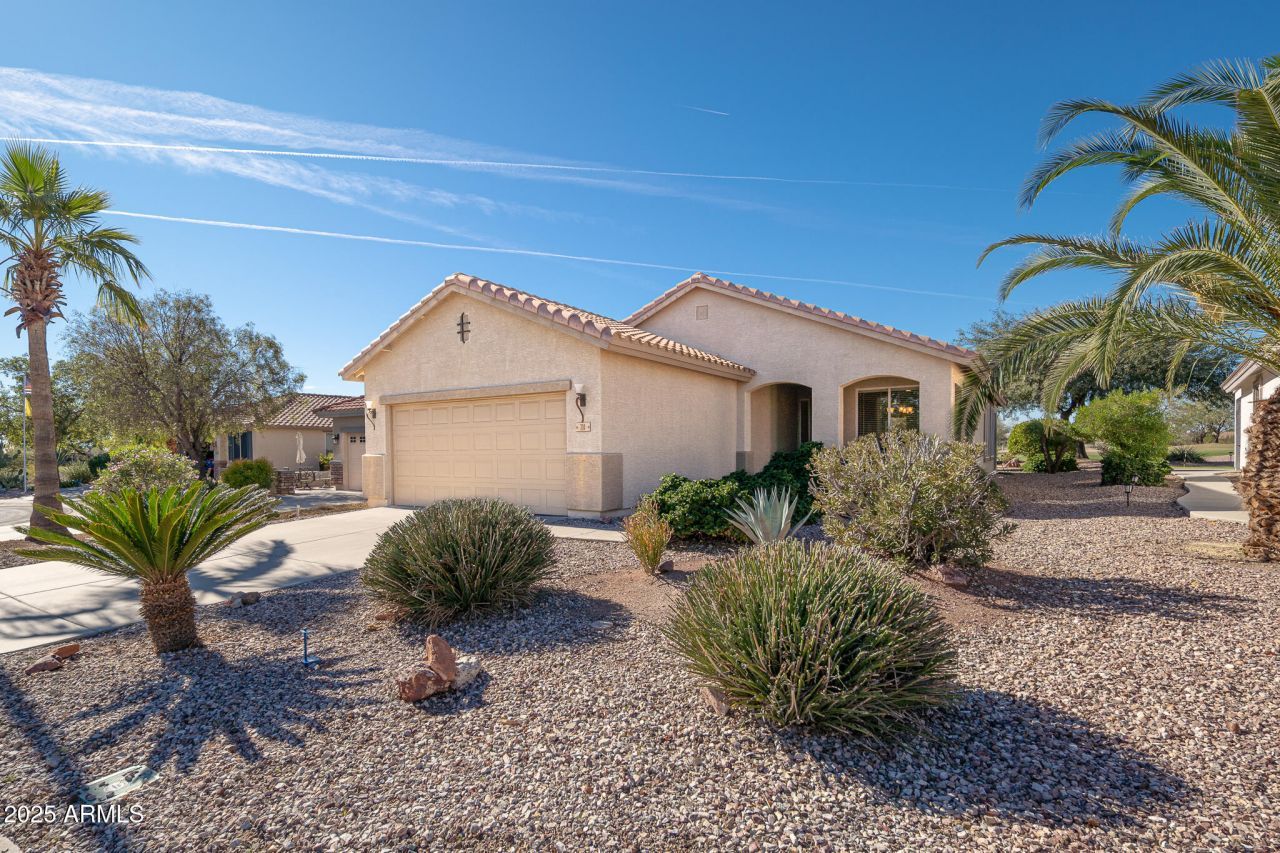 Enjoy the Golf Course View from almost every room in this hard to find, 3 bedroom Cholla Model Home. Spectacular Desert Sunset views can be yours from your spacious extended patio. This home was designed to enjoy theoutdoors. You have your own putting green to practice those short shots before you hit the greens. This home is ready for an easy move in, furniture is included, bring your toothbrush and clothing, everything else is here for you to begin enjoying your resort style home. Sundance Active Adult community is known for its friendly neighbors and fun community activities throughout the year. You will be walking distance to the course, restaurant and the Sundance Community Center. Shopping and other restaurants are also within walking distance, making it one of the best located homes in the community. Come and view this beautiful home ready for you to make it your own.