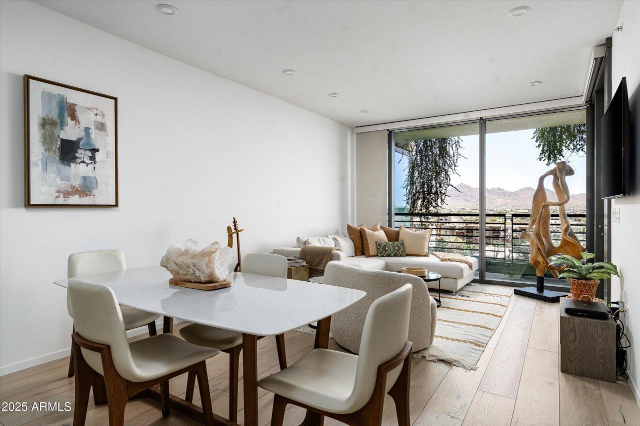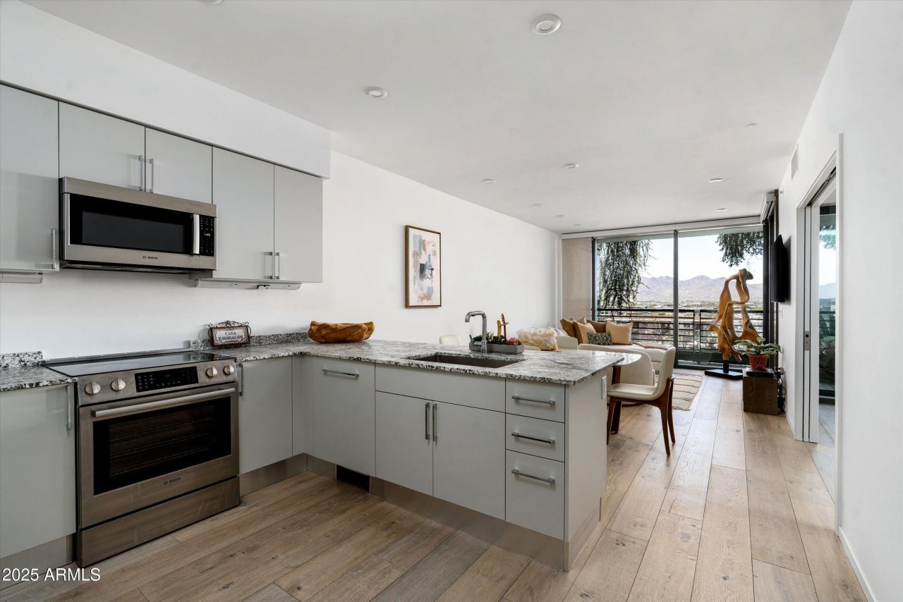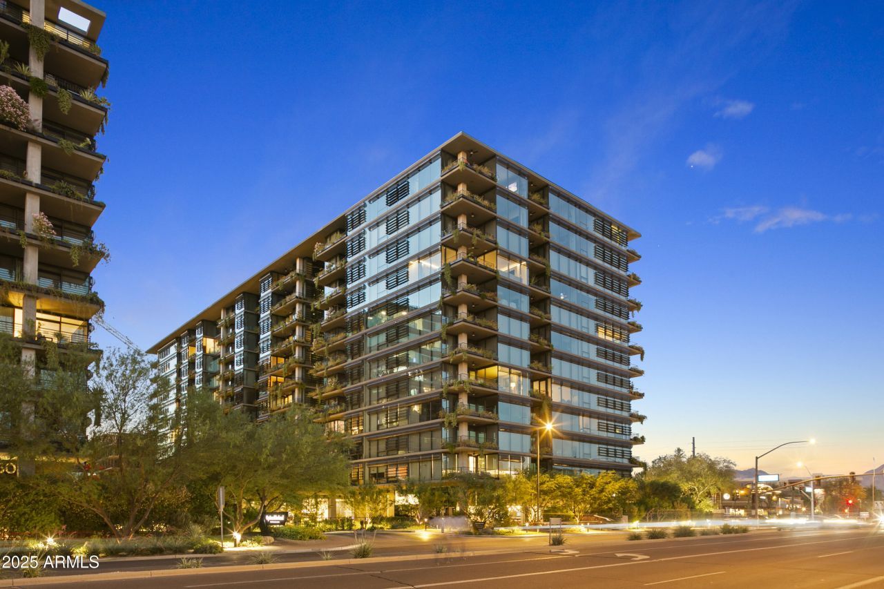 Elegance meets Luxurious, Location, Lifestyle & Amenities with a spectacular & rare coveted 8th Floor 1 bedroom home with East facing views! 7180 Optima Kierland building amenities combined with this 1 bed 1 bath, lets face it, these are rarely available! This home has a large balcony with stunning views! Eighth Floor Elevated Views incorporate the beautiful picturesque scenery of the majestic McDowell Mountains. This spacious & comfortable open-concept living area & floor plan is ideal for entertaining guests; while the expansive windows frame breathtaking views of the surrounding mountains by day & twinkling city lights at night! Light & Bright throughout with the spacious feel of the open floor plan offers the incomparable. Wood floors add to the elegant light & bright color palette. Optima Kierland 7180 offers the uncompromising lifestyle amenities you have been looking for! You & your guests will love the 16,000 sqft state of the art fitness center with strength training / cardio equipment, Yoga rooms and the rooftop swimming pool, spa, fire pit & amazing views as well as hot / cold plunge, sauna, steam rooms, massage rooms, indoor basketball court, gaming room, billiards, ping pong, bocci, & pickle ball as well as golf simulator, golf putting area; and so much more. Please see the Amenities lists & the original Optima Kierland Site Plan Map for more information in the documents tab to learn more about the amenities on the first floor level and the outstanding top floor Sky Deck!