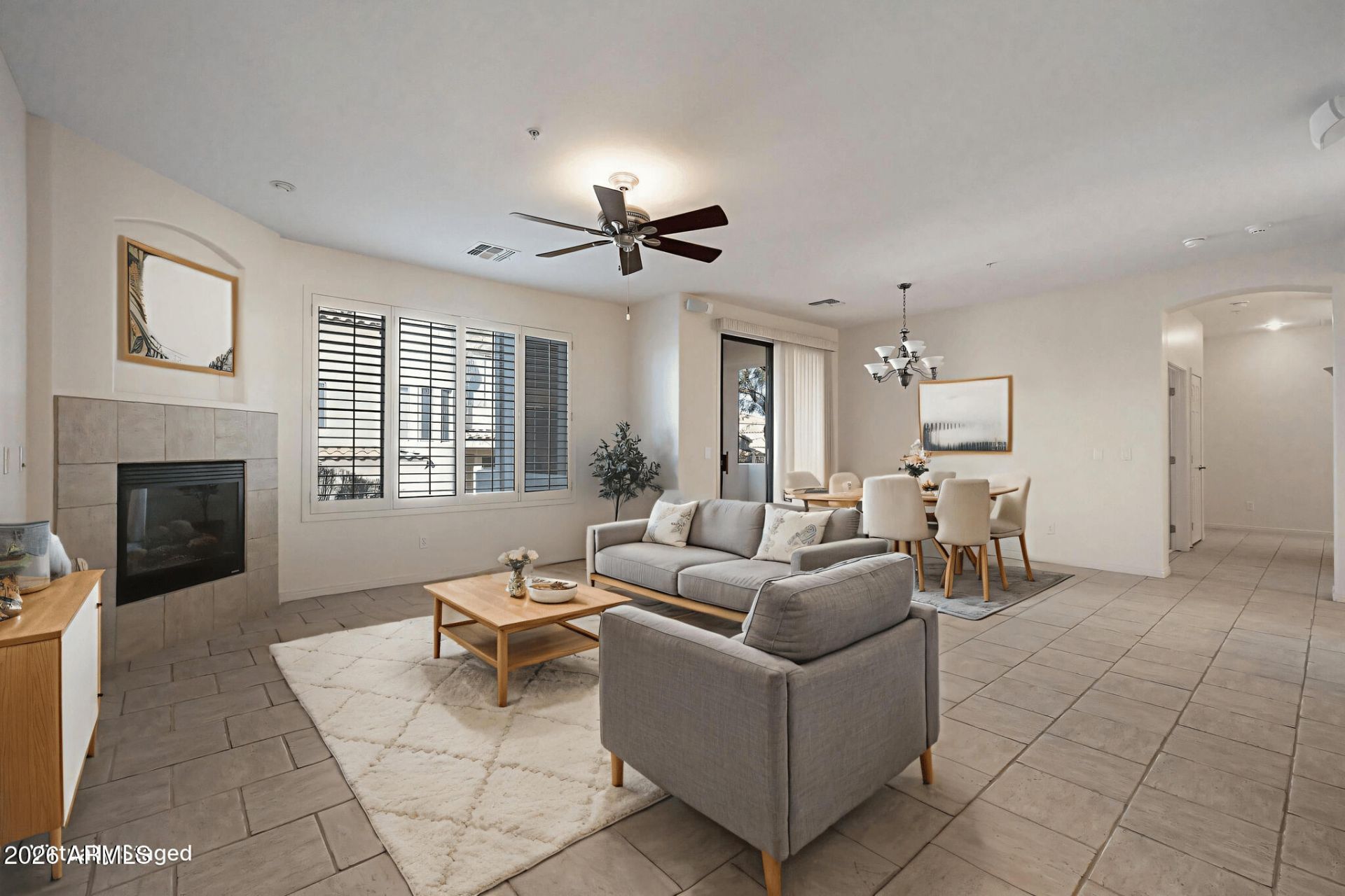 Bring Offer! NO STAIRS,NEW A/C, CARPET, PAINT, PRICE! RED MOUNTAIN VIEWS! . HOA covers so much! Youll love this Gated community adjacent to Las Sendas Golf Club w/ super amenities, low maintenance, lock & leave. Well cared for ground floor Villa. 2 spacious Bedrooms +Den/3rd bedroom, kitchen w/ breakfast bar & dining. S/S appliances, upgraded 42 cabinets. Newer dishwasher, oven, range, & microwave. Great room w/ fireplace, wet bar, surround sound, plantation shutters & dining room. Large master bedroom w/ full bath & jetted tub. 2 Large tiled PATIOS w/ sunset & pool views off master & dining room. Large 2 car epoxied garage & storage cabinets. Private & quiet. Close to beautiful heated pool, spa, & exclusive exercise facility + LS amenities INCLUDED. Hiking trails, tennis, clubs, Move in ready! The HOA fee covers water, sewer, trash, exterior building maintenance, roof, painting, landscaping services for added convenience.Las Sendas amenities included: 2 community pools, hot tubs, clubhouse, tennis courts, pickle ball courts, splash pad, parks. Golf course memberships available as well as Las Sendas Spa. Easy access to the scenic trails of Tonto National Forest and Saguaro Lake. Just 30 min from Airports, Pro sports, Phoenix, Spring Training, & Valleys best shopping & dining!Linen closet could be converted to 3rd bedroom closet. 2019-01-25 Maytag Washer & Dryer - Large capacity 2021-06-22 Whirlpool WHESFC Pro Series Whole Home Water Softener 2022-09-11 30 in. 1.7 cu. ft. Over-the-Range Microwave in Stainless Steel Finish with Express Cooking 2023-06-17 6.3 cu. ft. WiFi Freestanding Electric Range & Oven with No-Preheat Air Fry & Convection in Stainless Steel 2024-07-02 Whirlpool 55 dBA Quiet Dishwasher with Boost and Pocket Handle 2025-12-01 New 4-ton AC with Gas Heat 14.3 seerOwners may park only 2 cars. Extra parking is for guests. At this time, units may not be rentals.Note: room sizes same in upper & lower units. Lower units have no staircase & room for closet & wet bar & larger patios. Its all Good...in award winning community of Las Sendas in Mesa, Arizona! Check out thetrailhead.org for specifics on this fantastic community!