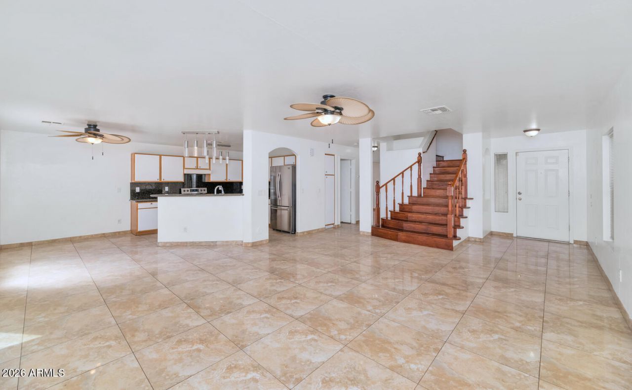 Dont miss this fantastic opportunity to own a spacious 5-bedroom, 3-bathroom home with a 2-car garage, ideally located in a quiet cul-de-sac directly across from a childrens playground and park, and within walking distance to nearby shopping.This bright and open home features a welcoming living room and a convenient downstairs bedroom with a full bathroom, perfect for guests or multi-generational living. The first floor showcases 20-inch ceramic tile flooring throughout, while the eat-in kitchen offers granite countertops, a breakfast bar, and a pantry, making it ideal for everyday living and entertaining.Upstairs, beautiful wood flooring on the staircase leads to a spacious loft, three additional bedrooms, and the impressive primary suite. The primary bedroom includes a full bathroom with double sinks and a walk-in closet.Step outside to an easy-to-maintain backyard featuring synthetic grass, a sitting area, an Arizona room, and a storage shed--perfect for relaxing or entertaining.This home offers comfort, space, and a great location.