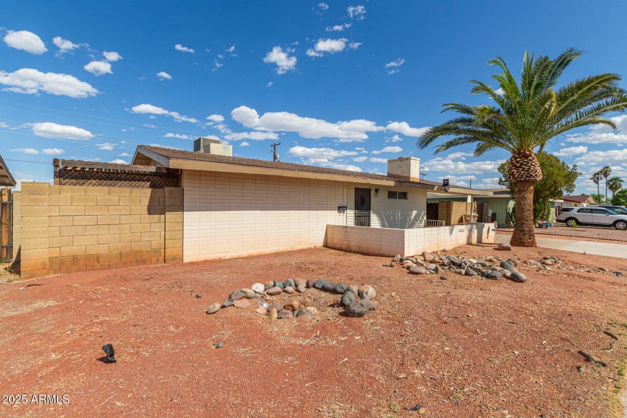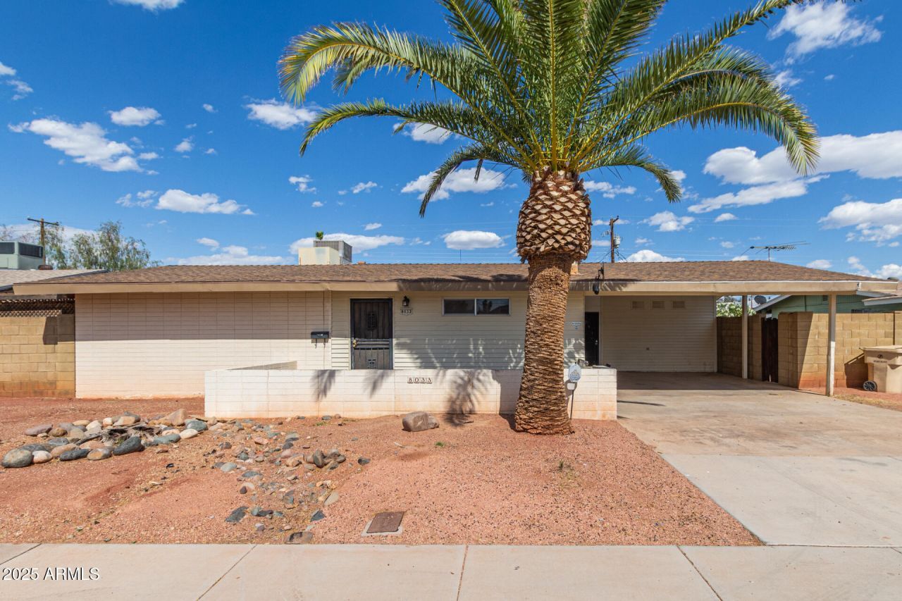 Fantastic opportunity to own this 3 bed, 2 bath single-level home in a great Glendale location! Full of charm & potential, this property is ready for your vision. A gated front patio & 2-carport spaces are just the beginning. Enter to find a large living room paired with a fireplace. Exposed beams & a breakfast bar add character to the dining area. The kitchen offers built-in appliances, ample cabinets, & a layout primed for a modern refresh. The main bedroom has a private bathroom! Also including sliding doors that open to a large Arizona room - ideal for expansion, entertaining, or creative use. Check out the backyard w/an open patio & room for your dream outdoor oasis! With solid bones & timeless features, this gem offers a fantastic canvas for updates and customization. Make it yours!