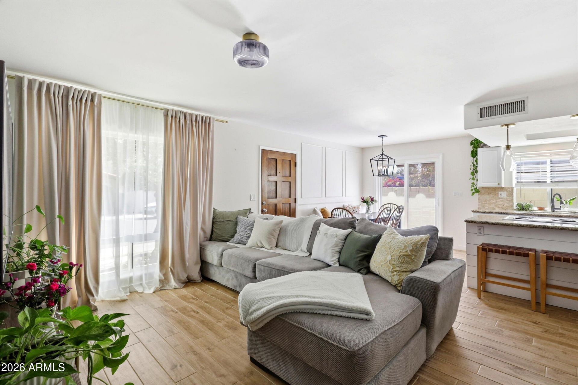 Tucked at the base of South Mountain in the highly sought-after Pointe South Mountain community, this beautifully curated 2-bedroom, 1.5-bathroom townhome offers the perfect blend of charm, thoughtful design, and Arizona lifestyle living.Step inside to discover a light-filled interior where every inch has been intentionally designed. Designer wallpaper, custom board and batten detailing, and a cohesive palette create a space that feels both elevated and welcoming. The home has been lovingly renovated and cared for, with creative touches that maximize functionality while adding warmth and character throughout.The outdoor living space is equally special. As a corner unit, the townhome enjoys a private patio with a lush garden setting and plenty of space for al fresco dinners or quiet evenings under the desert sky. A rare bonus in the community, the property also includes one of the larger storage units in the complex.Residents of the gated Pointe South Mountain community enjoy access to four community pools and multiple gathering spaces, including one with sweeping city views--perfect for relaxing or entertaining. The location is truly a hidden gem: nestled at the literal base of South Mountain and surrounded by the natural beauty of the desert landscape, while also set within the Arizona Grand resort and golf community. For those seeking an enhanced lifestyle, homeowners have the opportunity to purchase additional memberships to enjoy the golf course and resort amenities.With its blend of thoughtful renovations, designer details, and an unbeatable location near some of South Mountains best hiking trails, this townhome is a rare opportunity to own a stylish retreat in one of Ahwatukees most unique communities.A home that has been filled with love, care, and creativity--now ready to welcome its next owner.
