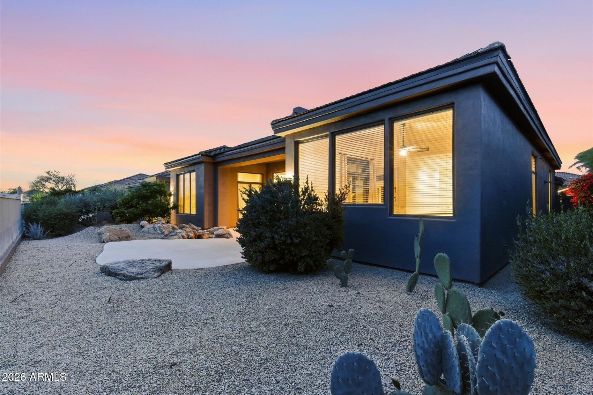 This stunning Edmunds home sits on a premium south-facing golf course lot in the highly sought-after Legend Trail community. Positioned along the 9th green, it captures sweeping mountain and golf course views. The desirable open-concept floor plan features 3 bedrooms and 2 baths, with the 3rd bedroom ideal as an office. Light-filled interiors, neutral finishes, and luxury vinyl plank flooring (2020) throughout create a clean, modern feel. The kitchen offers a breakfast bar, gas cooktop, wall oven, built-in microwave, and Bosch dishwasher. Step into the low-maintenance resort-styled backyard with sliding doors offering a spacious covered patio and a putting green. Additional updates include a new roof (2024), two HVAC units (2023), stainless steel appliances (2024/2025) reverse osmosis system (2024), hot water heater (2023), exterior paint (2022), fountain pump (2023). A rare opportunity to enjoy turnkey golf course living in one of North Scottsdales most desirable communities.