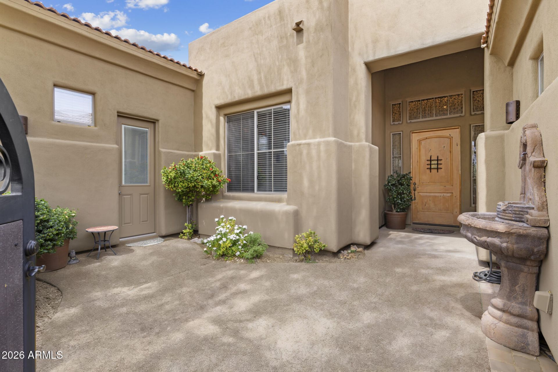 Troon North- Exquisite, Single Level home featuring 4 bedrooms, 2.5 baths, and a 3-car garage tucked on a quiet street and backing to a serene preserve. This custom residence offers privacy, sweeping views, and elevated desert living. Open-concept design blends sophistication and comfort with formal living and dining spaces, soaring 12-foot ceilings, coffered architectural details, travertine floors, and a striking fireplace. The chefs kitchen is beautifully appointed with rich alder cabinetry, granite slab countertops, premium stainless steel appliances, double ovens, and a gas cooktop. The primary suite is a true retreat and ensuite bath with travertine shower and jacuzzi tub. Set on an oversized lot, the backyard is a peaceful retreat featuring natural desert landscaping, bordering untouched desert for enhanced privacy, with striking boulder formations and stunning sunset views. Impeccably maintained and move-in ready. Nestled within one of Arizonas most prestigious golf communities, Troon North offers world-class fairways and breathtaking desert scenery. Perfectly positioned in north scottsdale, moments from fine dining, luxury shopping, hiking trails, and seamless access across the valley.