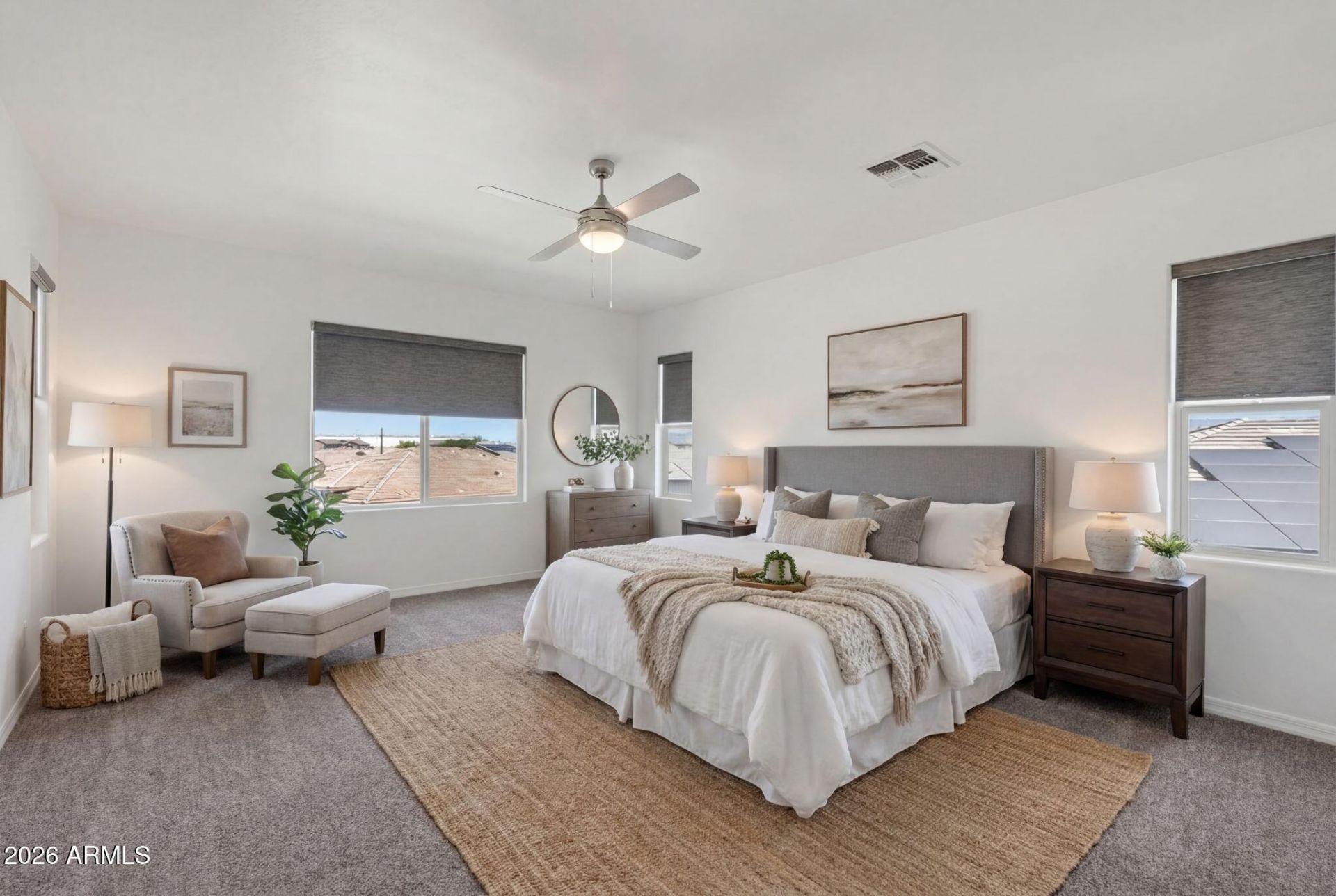 Absolutely stunning, move-in ready Maracay home in the highly desirable, award-winning master-planned community of Eastmark in Mesa, Arizona! This meticulously maintained, highly upgraded 5-bedroom, 4.5-bathroom residence, featuring a spacious loft and a 4-car tandem garage offers luxurious modern living in one of Mesas premier neighborhoods. Step into a grand two-story entrance thats light, bright, and open, with fresh newly painted interiors throughout for a crisp, contemporary feel. The main level includes a versatile generation suite (ideal as a casita or in-law quarters) featuring its own private entrance, bedroom, full bathroom, sitting room, and washer/dryer hookups--perfect for multigenerational living or guests. The gourmet chefs kitchen is a true entertainers dream, boasting abundant extended cabinetry, an oversized island with elegant pendant lights, sleek granite countertops, premium stainless steel appliances, a 5-burner gas cooktop, a range hood, a wine refrigerator, double wall ovens, and convenient pot-and-pan drawers under the cooktop. Flow seamlessly into the oversized family room with panoramic double sliding glass doors that open to the extended covered patio, creating abundant natural light and effortless indoor/outdoor living. This layout keeps you connected--whether cooking, relaxing in the living area, or enjoying the backyard. Upstairs, enjoy a generous loft with built-in wood desks and storage--ideal for a home office, homework station, or game room. The private master suite showcases breathtaking Superstition Mountains views, separate his-and-hers vanities, a luxurious soaking tub, separate shower, and an expansive walk-in closet. Three additional bedrooms share two full bathrooms (including a convenient Jack-and-Jill setup with shower/tub combos). Outside, the professionally landscaped backyard is an inviting low-maintenance oasis: lush synthetic grass, paver walkways, mature citrus trees, and plenty of side yard space for a dog run, storage, or future expansions. The extended covered patio provides ample room for outdoor seating, dining, and relaxation. Additional premium upgrades include tile flooring downstairs, a whole-home water softener and RO system, tankless water heater with recirculator, roll-up window coverings (most blackout), upgraded lighting fixtures, floating garage storage, and a desirable North/South exposure lot. Eastmark delivers an unmatched lifestyle with over 40 neighborhood parks, a community clubhouse/rec center, heated resort-style pool, splash pad, basketball courts, sand volleyball, ball fields, dog park, sustainable farm for fresh produce, the iconic Handlebar/Steadfast Diner, extensive biking/walking trails, catch-and-release fishing pond, frisbee golf, skate park, and year-round community events like Easter parties, Halloween festivities, free concerts in the park, and food truck nights. Exciting news for future convenience: The highly anticipated EastMarket retail development is underway right in the heart of Eastmark (at Ellsworth and Ray roads), anchored by a new Sprouts Farmers Market and featuring nearly 45,000 square feet of additional retail and restaurant space. Construction is progressing, with completion expected around mid-2026 and Sprouts opening in late 2026--bringing elevated shopping, dining, and neighborhood amenities even closer to home! Enjoy convenient access to Dignity Health Hospital, The Point shopping center, top-rated schools (BASIS Mesa, Sequoia Pathfinder Academy, Gateway Polytechnic Academy, and E