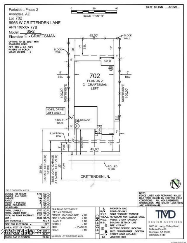 This single family home located at 9966 W Crittenden Lane, Avondale, AZ 85392 is currently listed for sale with an asking price of $443,640. This property was built in 2026 and has 5 bedrooms with 1700 sq. ft. W Crittenden Lane is located in the Parkside Rio Vista subdivision within the Tolleson Union High School District school district. Search Parkside Rio Vista real estate on www.arizonabest.com today.